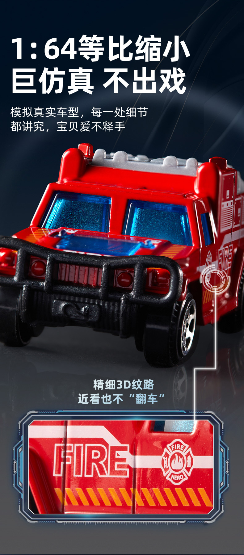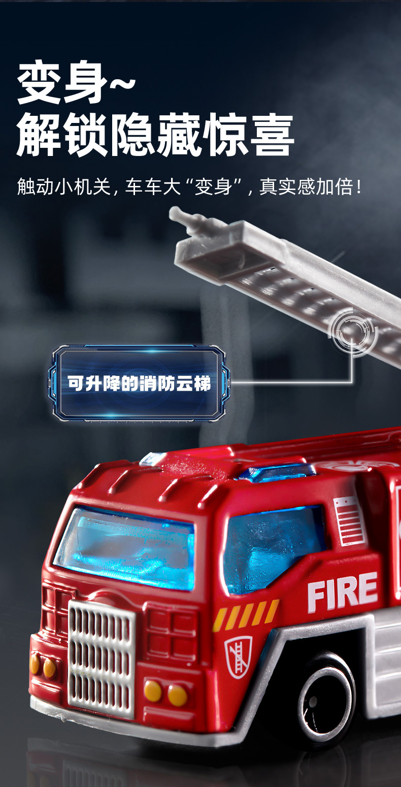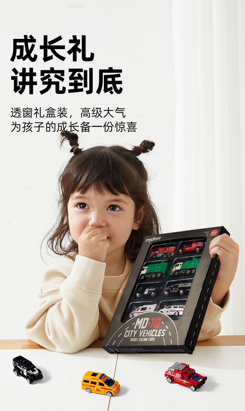mideer弥鹿儿童玩具合金车模型男孩惯性仿真小汽车消防工程车套装