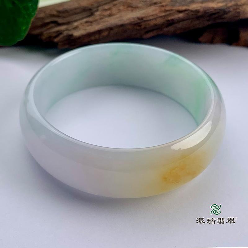 派瑞翡翠 翡翠手镯 糯种 三彩