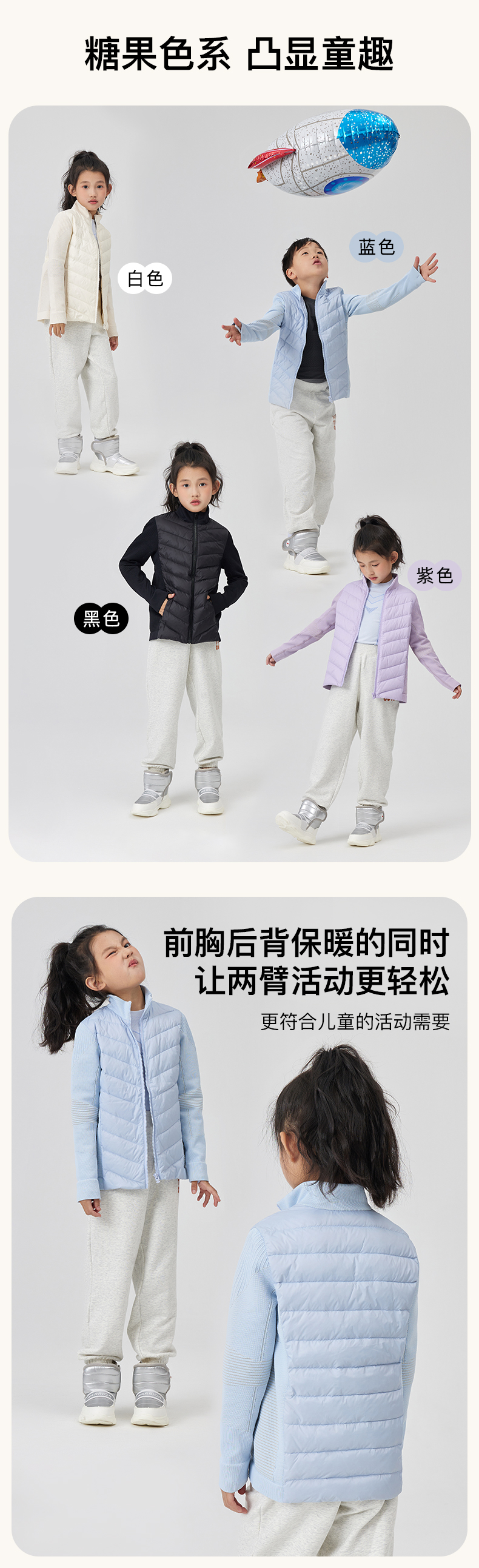 Leorrey乐拉保暖轻盈儿童童装女童男童冬季羽绒服白鸭绒运动外套