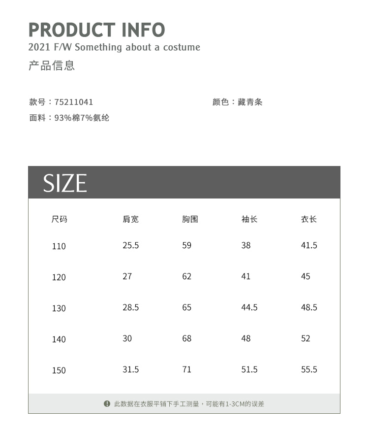 | 参考身高: 110/52 120/56 130/60 140/64 150/68 | 适用季节: 春秋 |