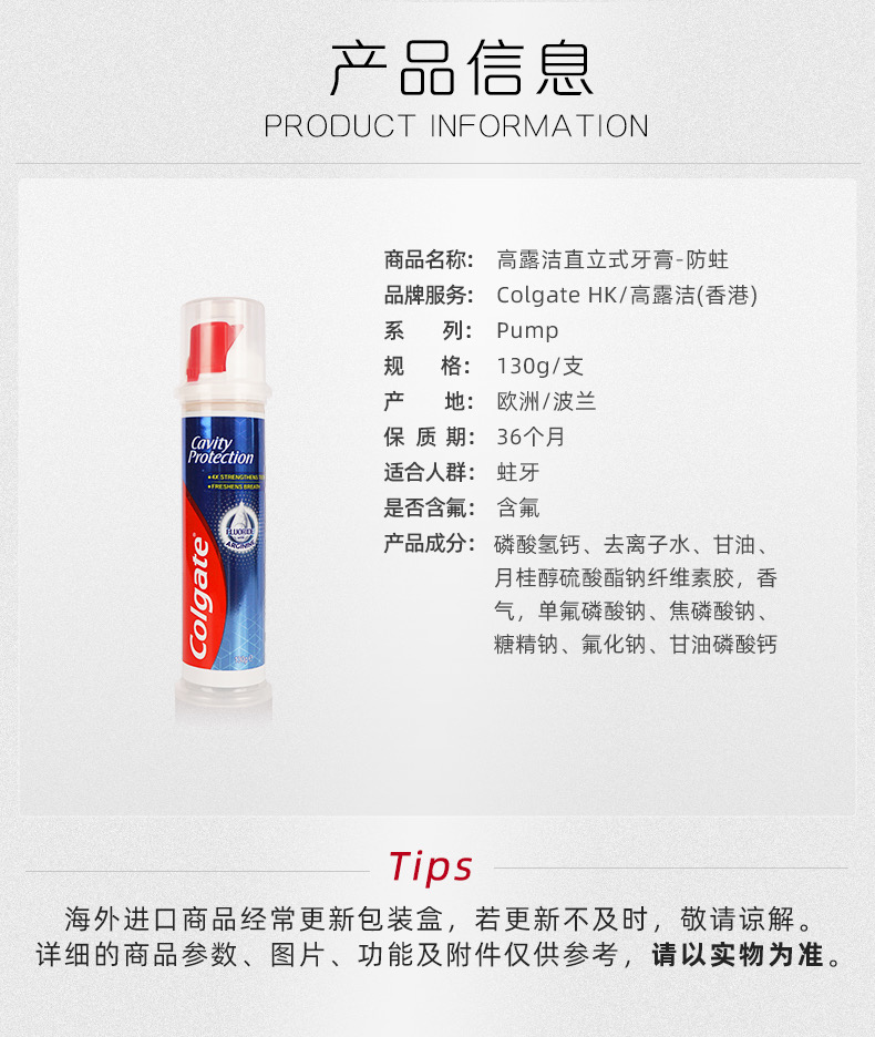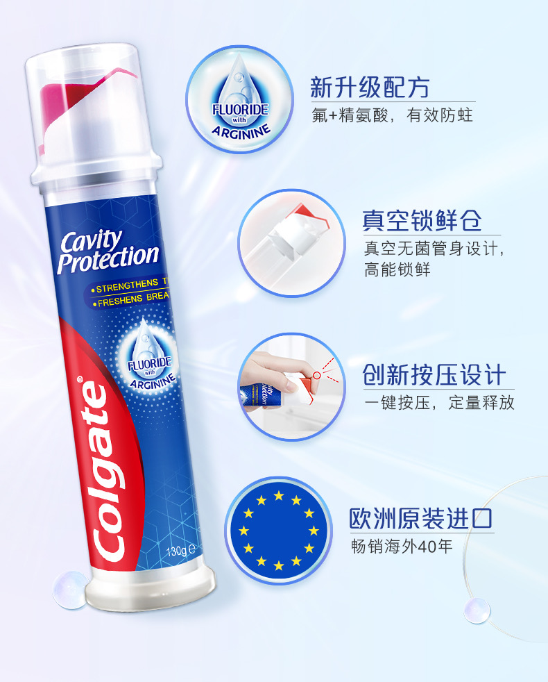 欧洲原装进口Colgate高露洁直立式牙膏-卓效防蛀(130g/支)