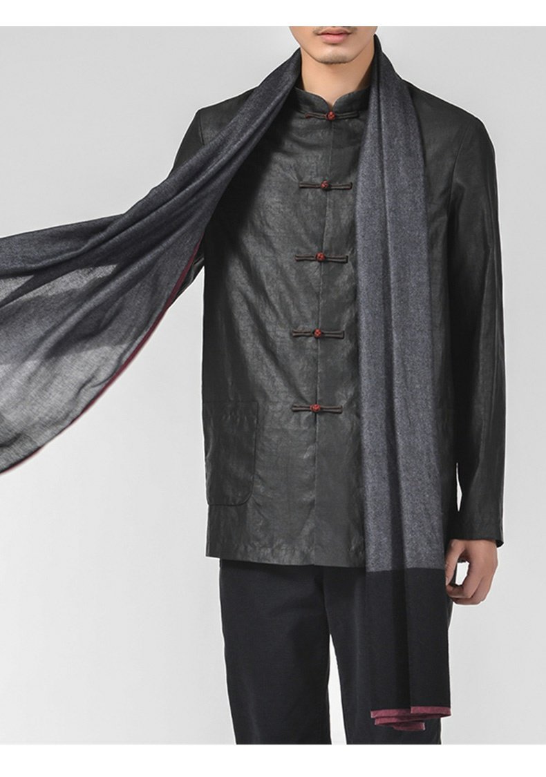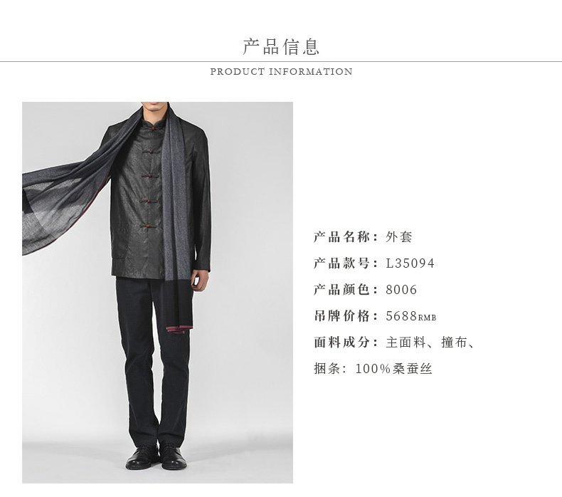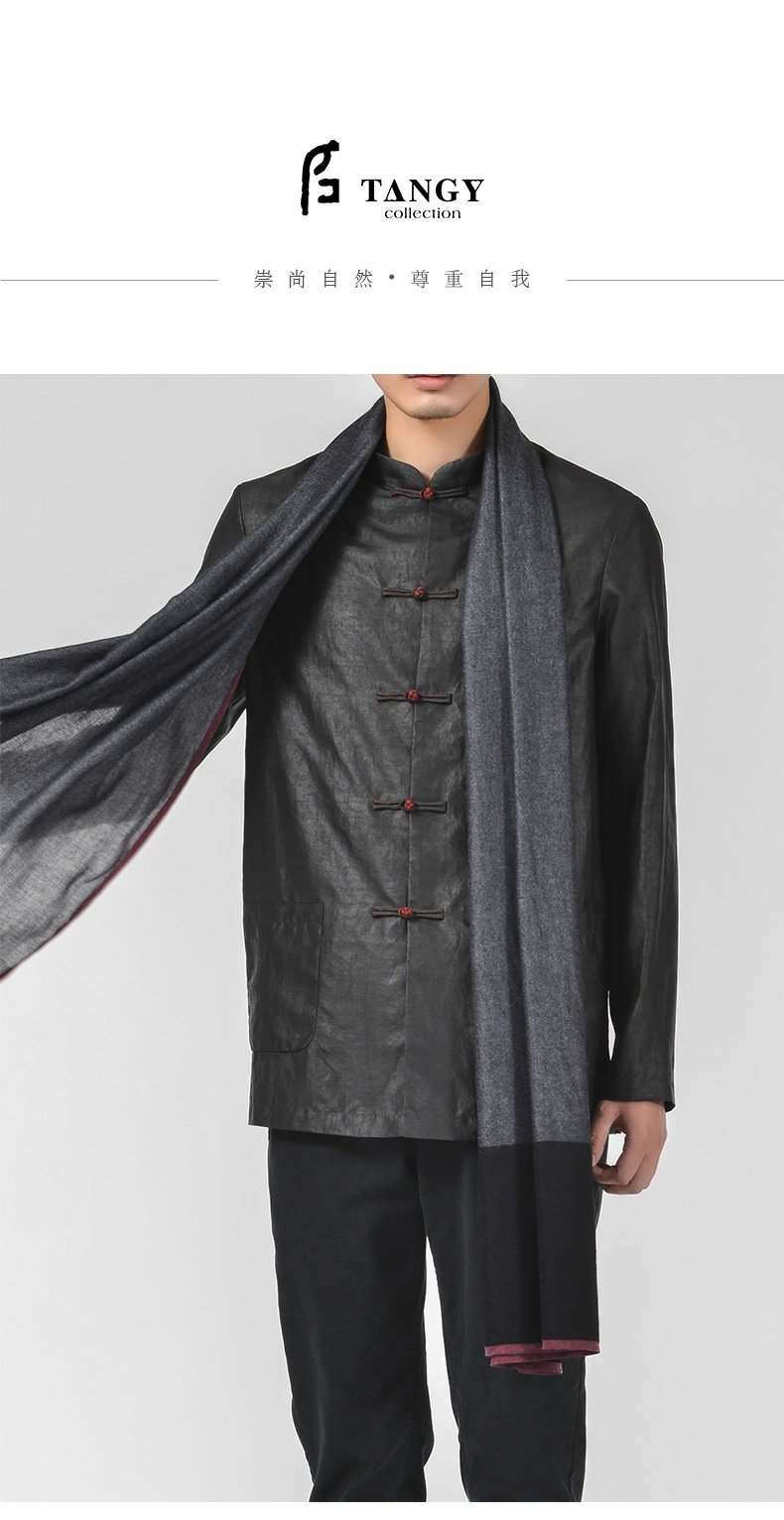 TANGY Collection/天意精品秋冬款简约中式盘扣立领男士莨绸外套