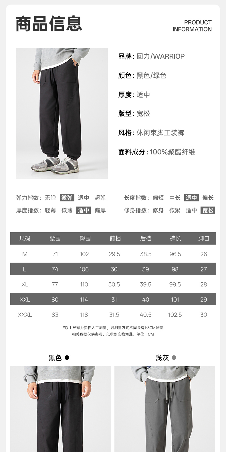 回力裤子男2025秋季新款直筒工装裤宽松休闲裤青少年运动束脚裤GZ