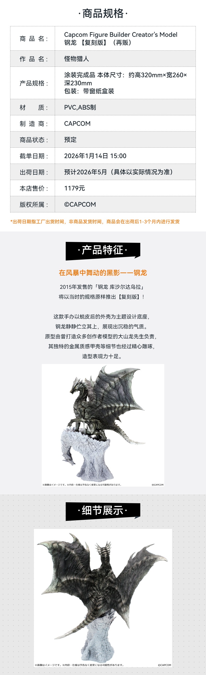 【GSC预售定金】Capcom Figure Builder Creator's Model 钢龙 【复刻版】 怪物猎人