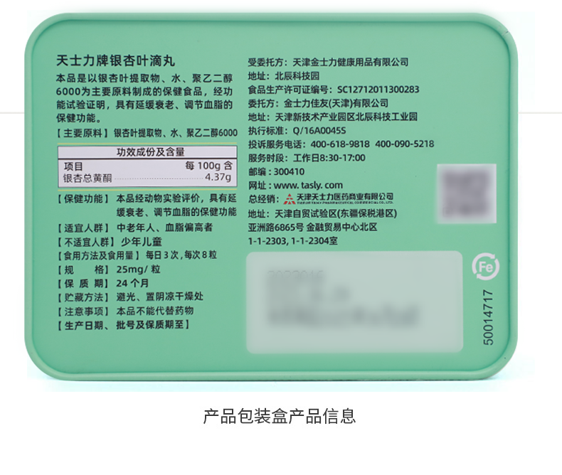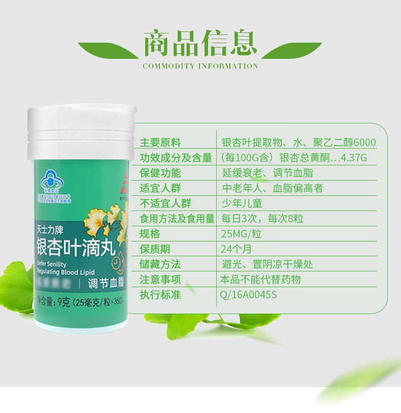 【天士力】 天士力牌银杏叶滴丸 25毫克/粒*360粒/瓶*2瓶