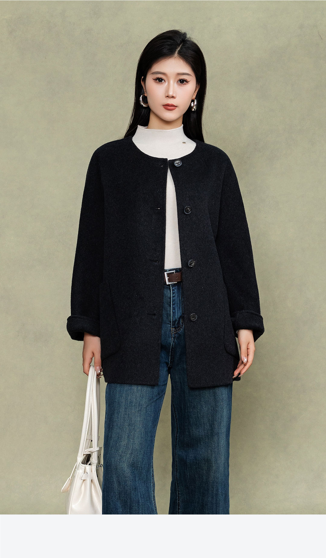 冬上新气质款黑色优雅显瘦双面呢大衣2254049