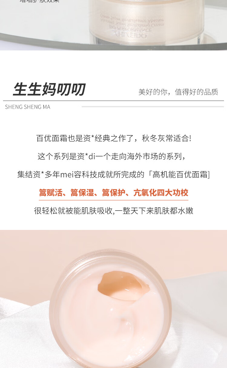 【小样】资生堂百优精纯乳霜体验装18ml/102151 乳霜质地丝般柔滑