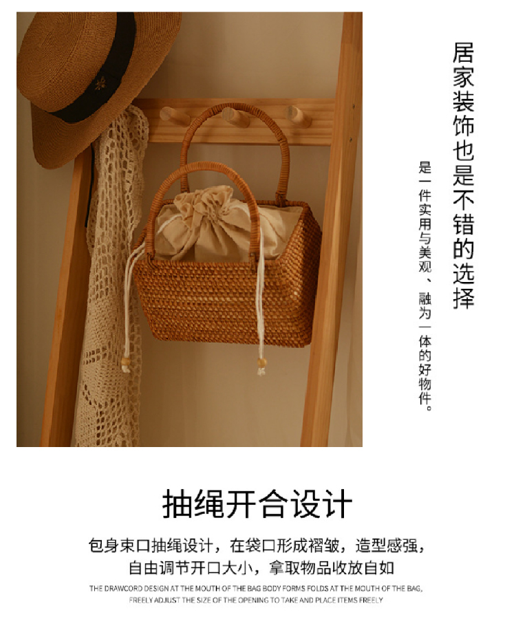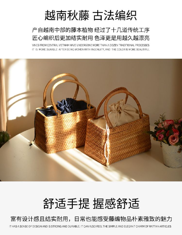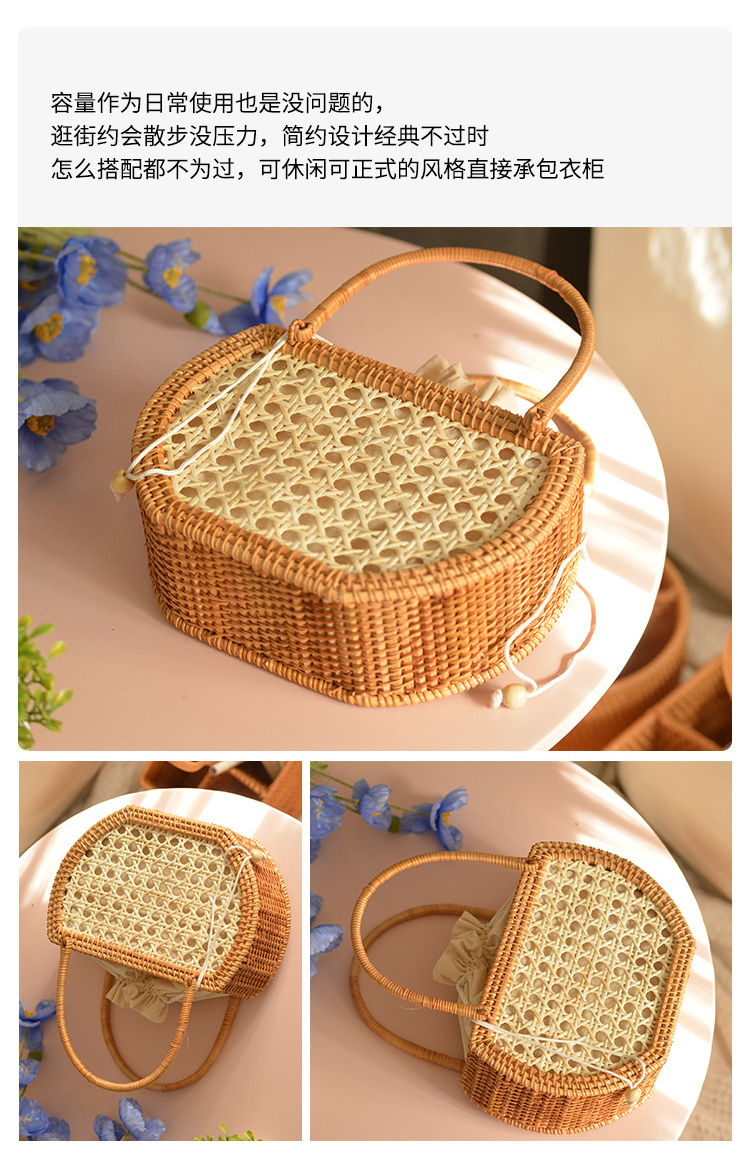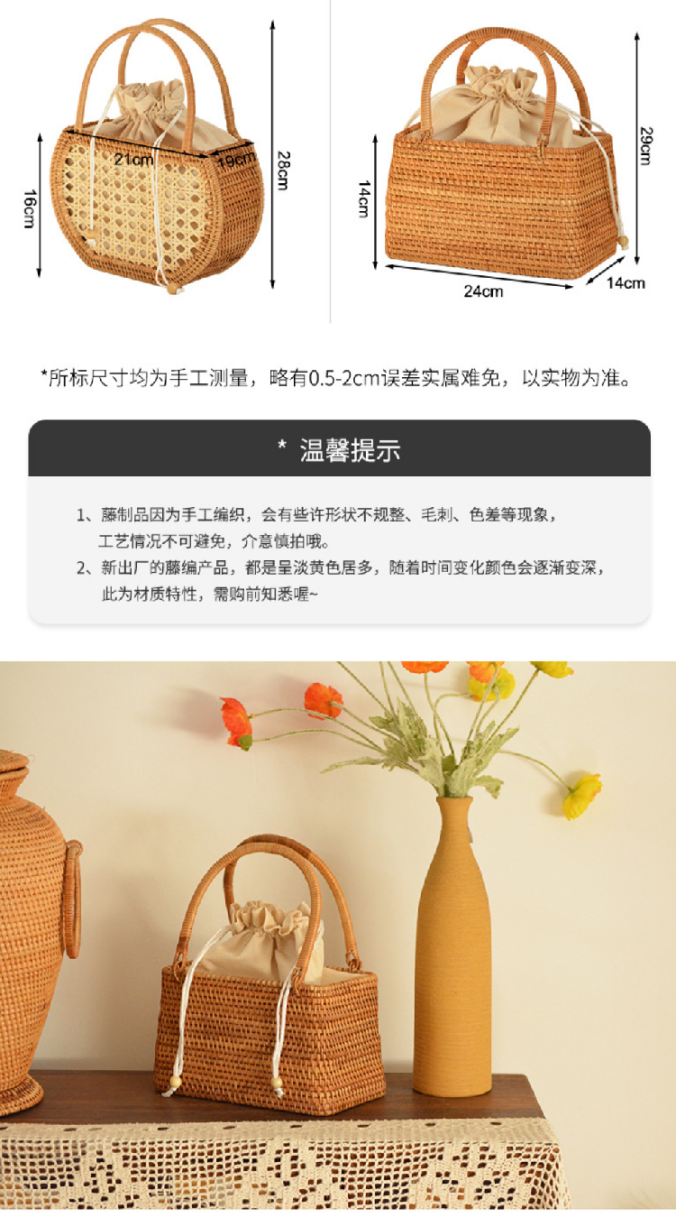 【藤编优质手提包】夏季出游手工编织提篮收纳包 异域风情大容量野餐旅行手提篮子系带包
