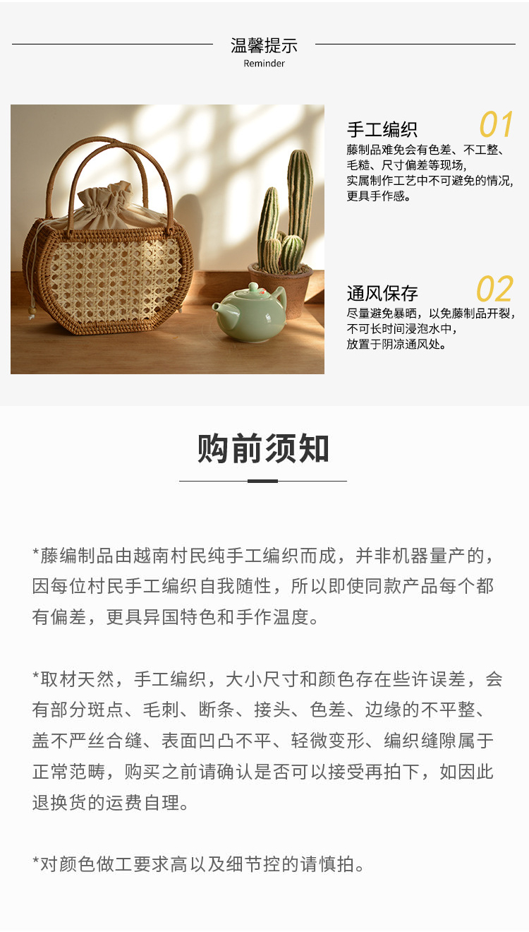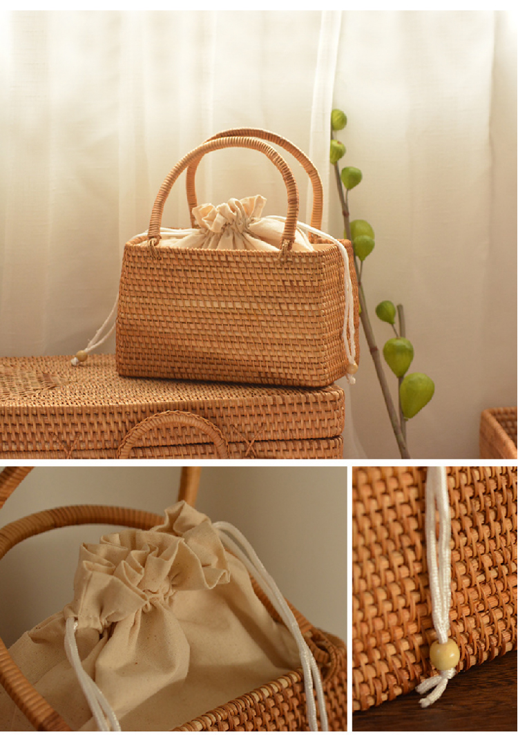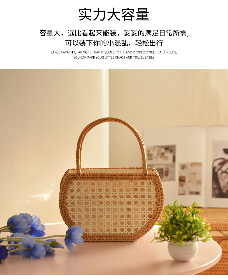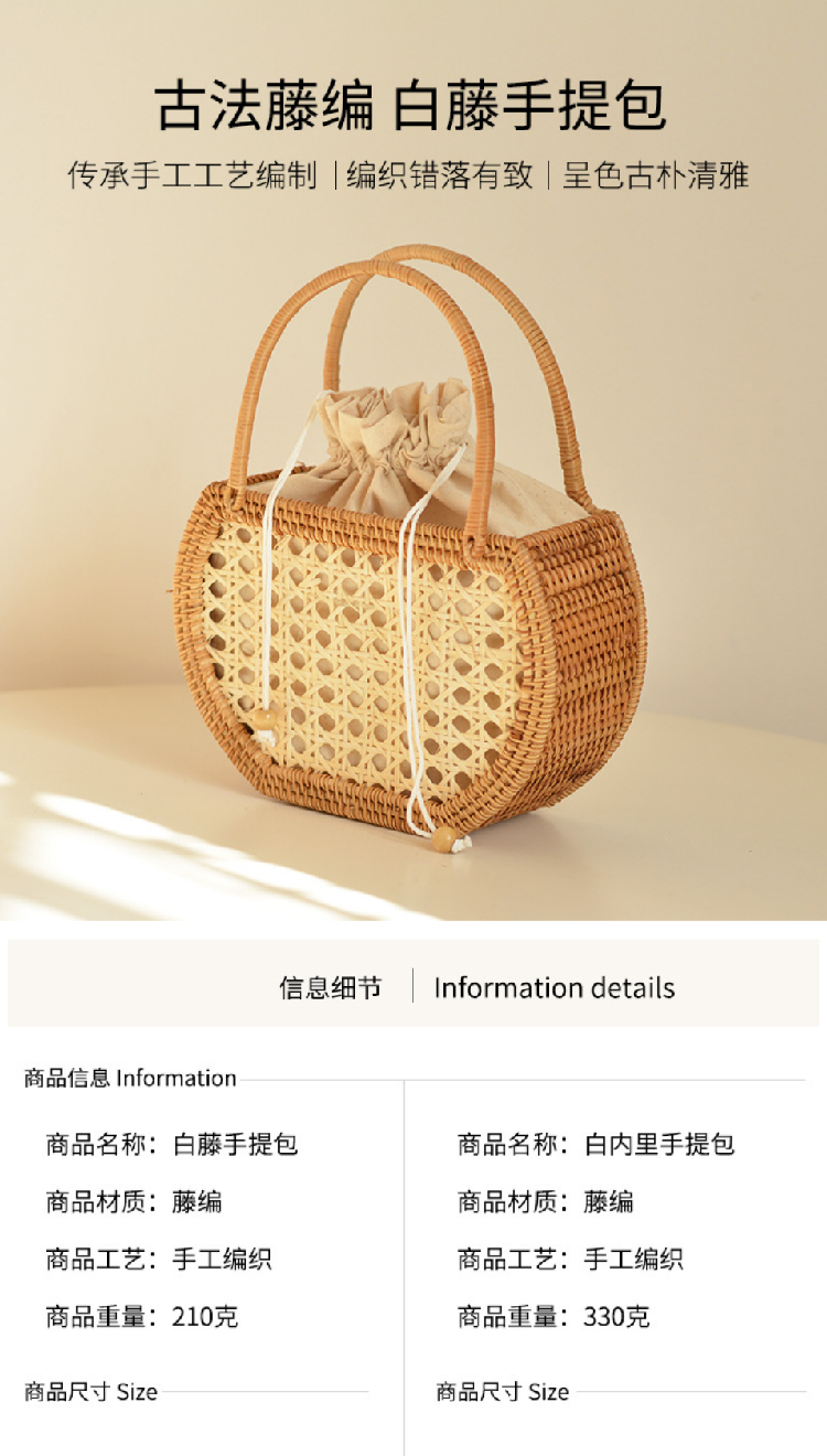 【藤编优质手提包】夏季出游手工编织提篮收纳包 异域风情大容量野餐旅行手提篮子系带包