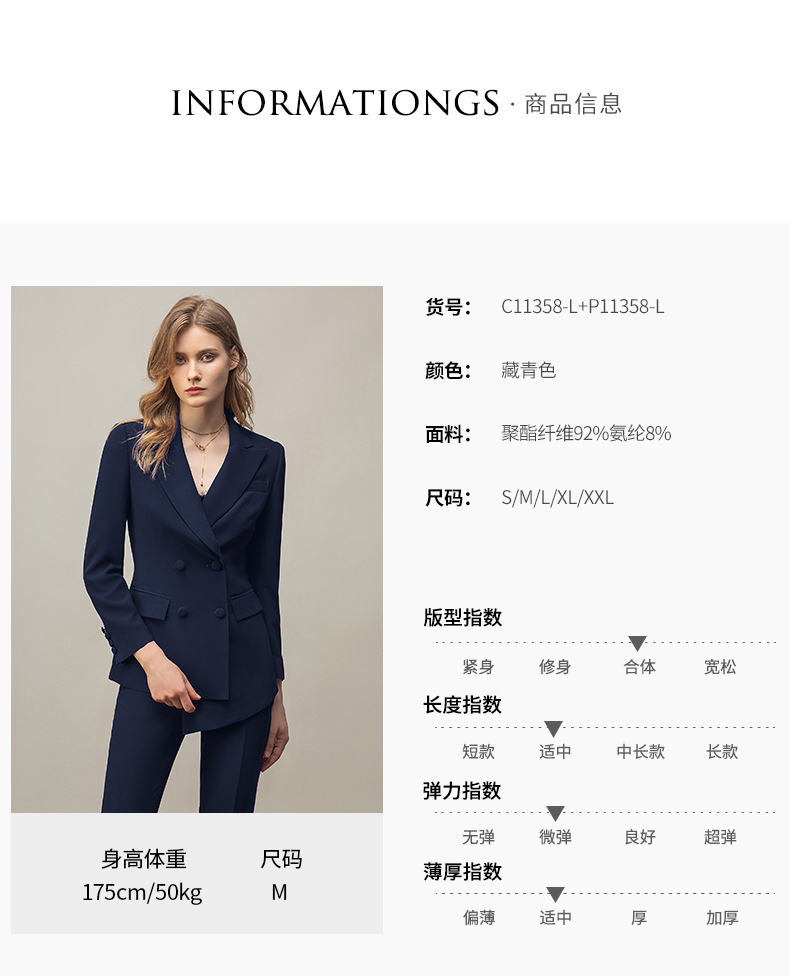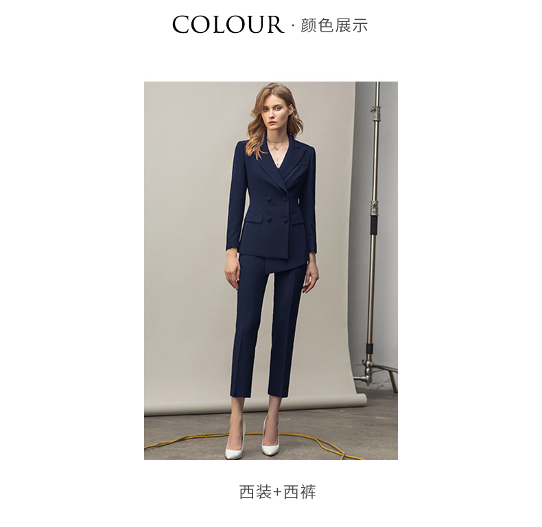 IWY/藏青色干练气质套装经典西装套裤女总裁职业装面试售楼部正装 CP11358藏青