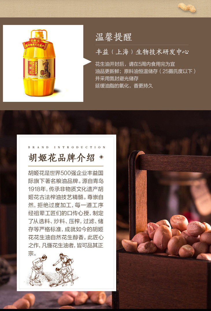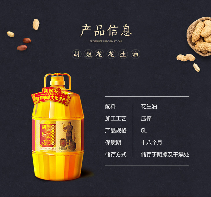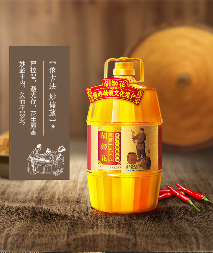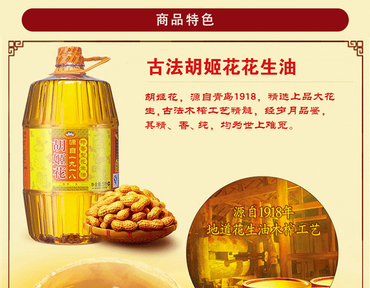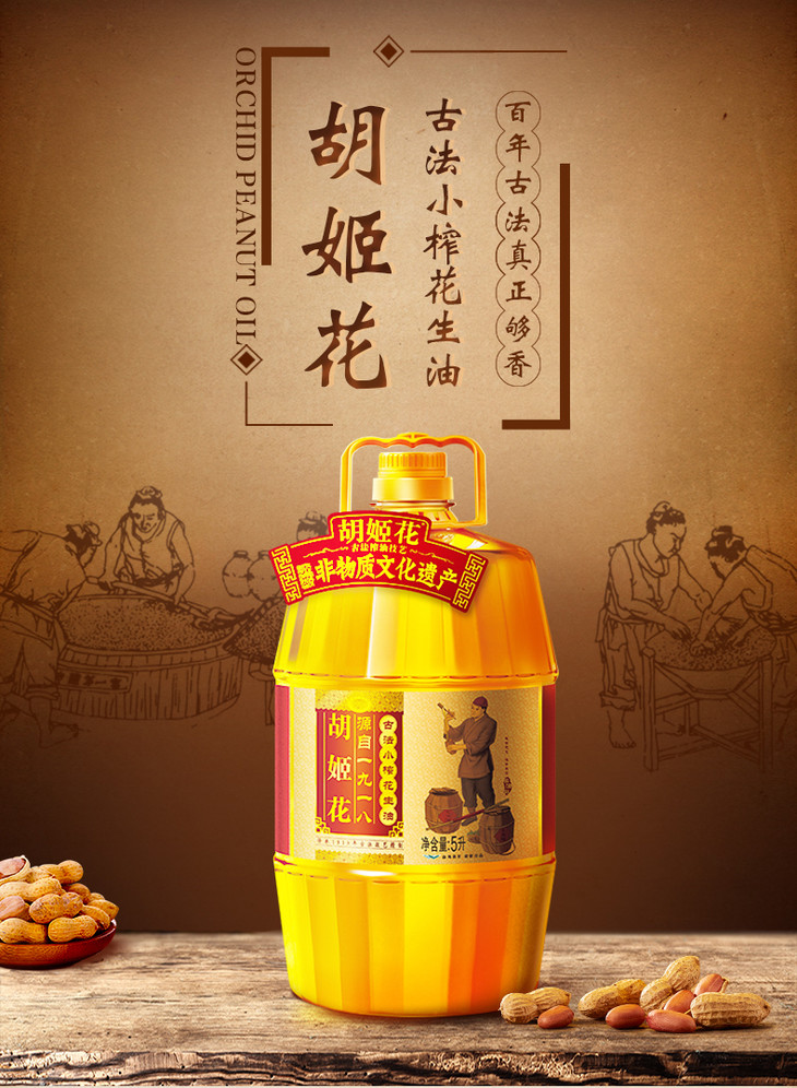 胡姬花古法小榨花生油5L