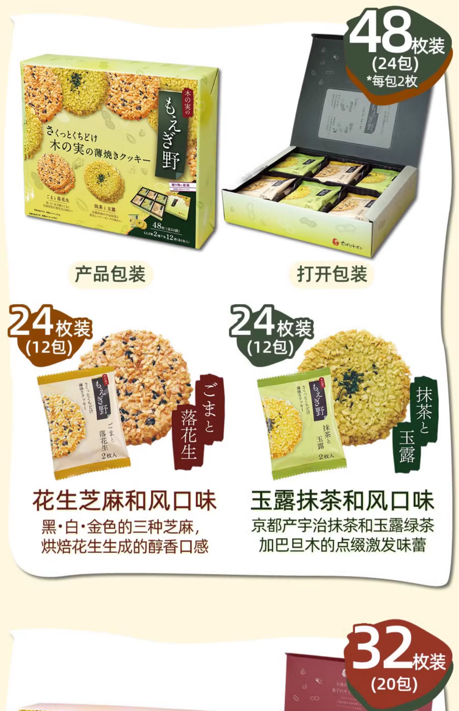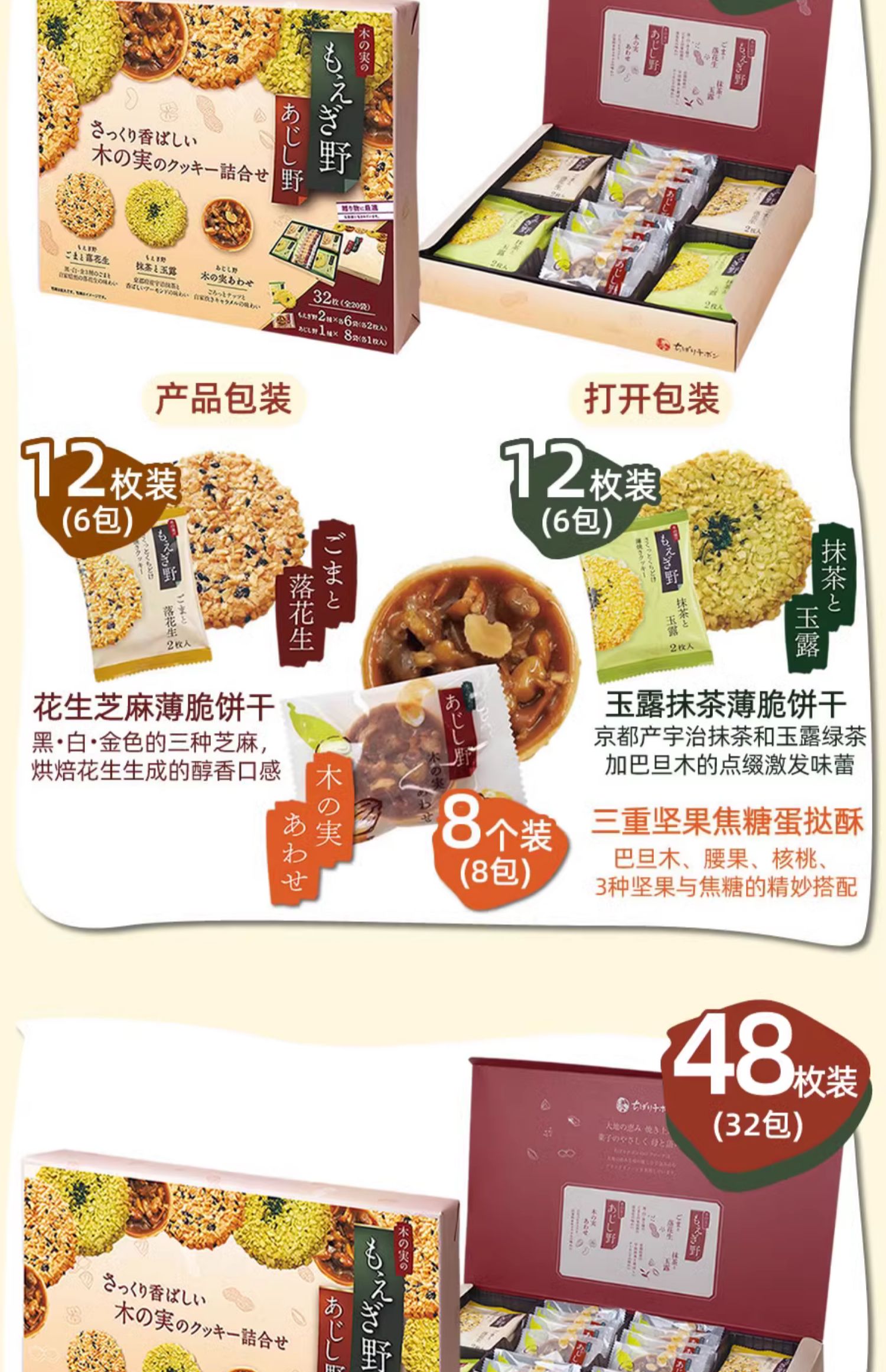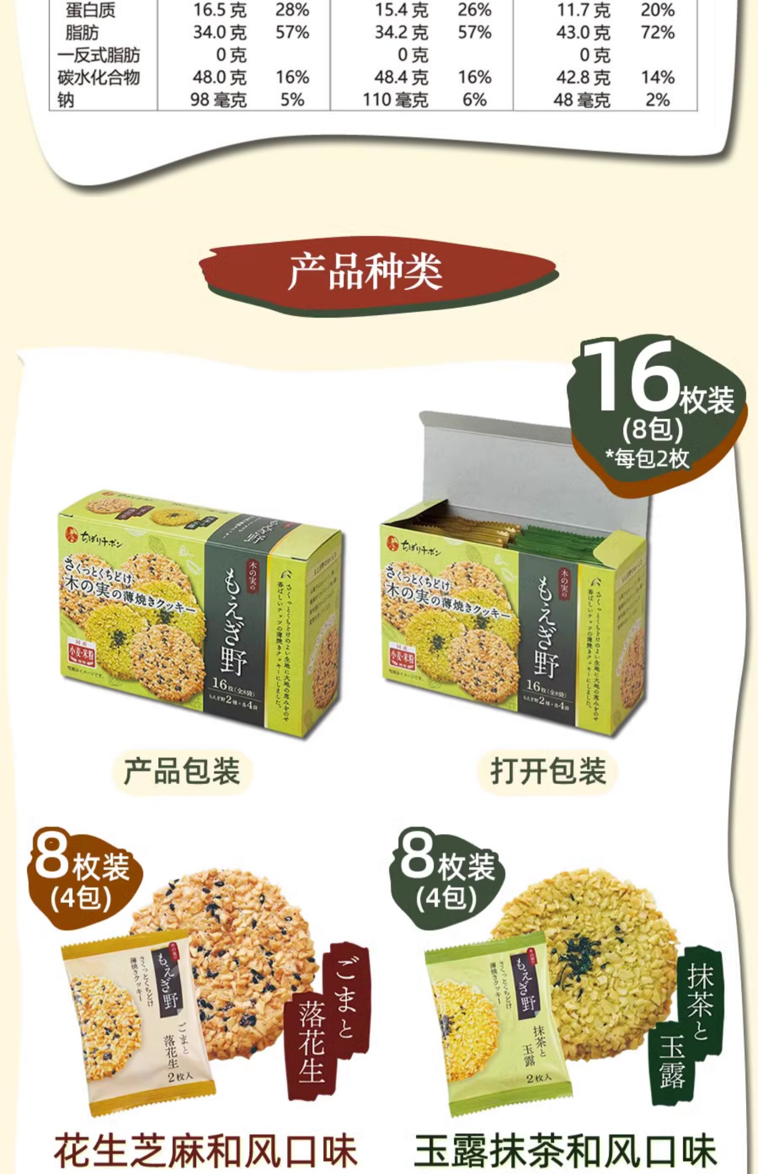 日本阡朋萌野盒装薄脆饼干24枚122.4g/055401 天然坚果搭配融合甜度刚好烹饪出的美味