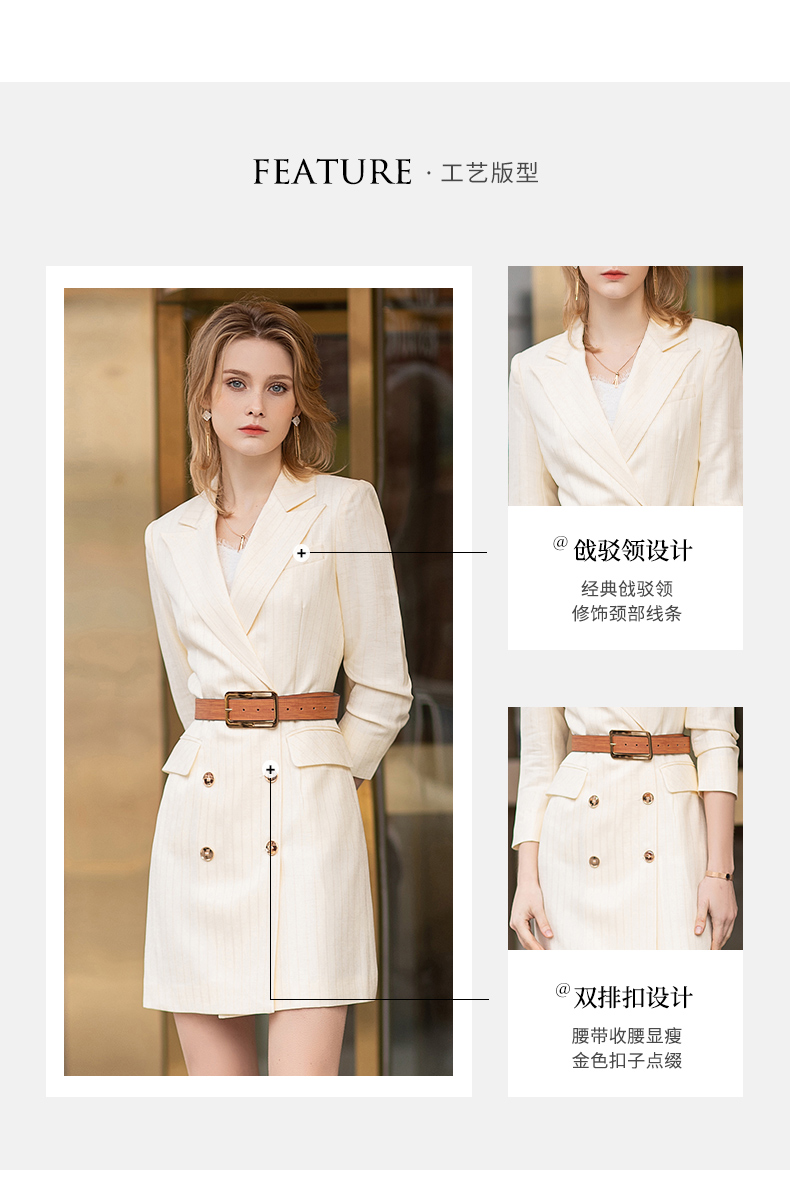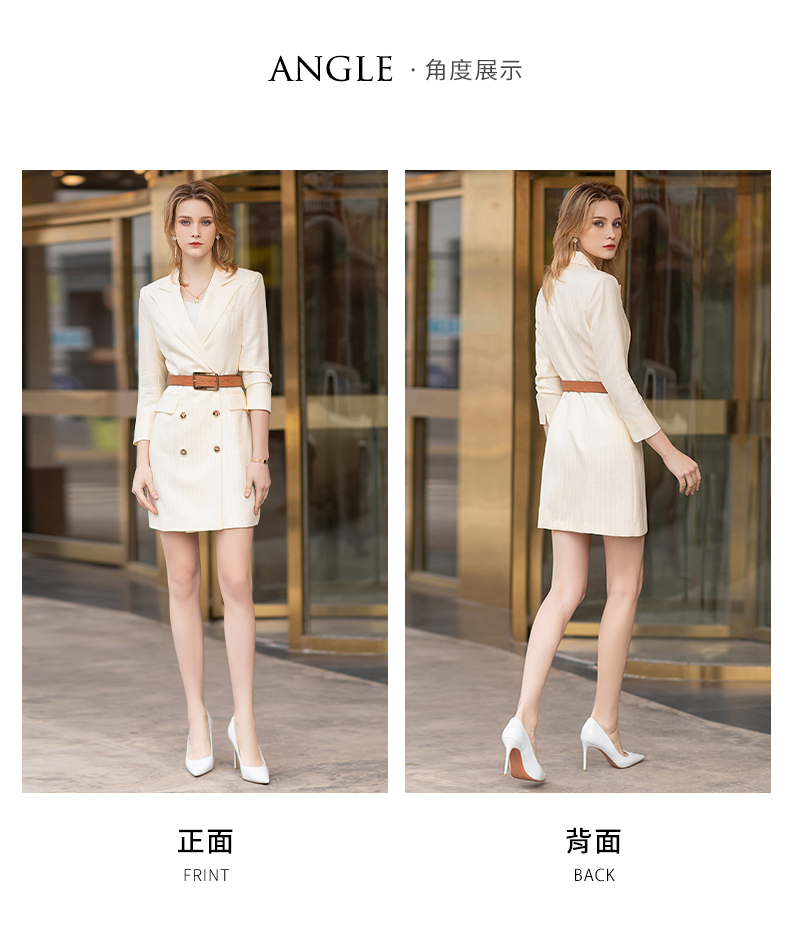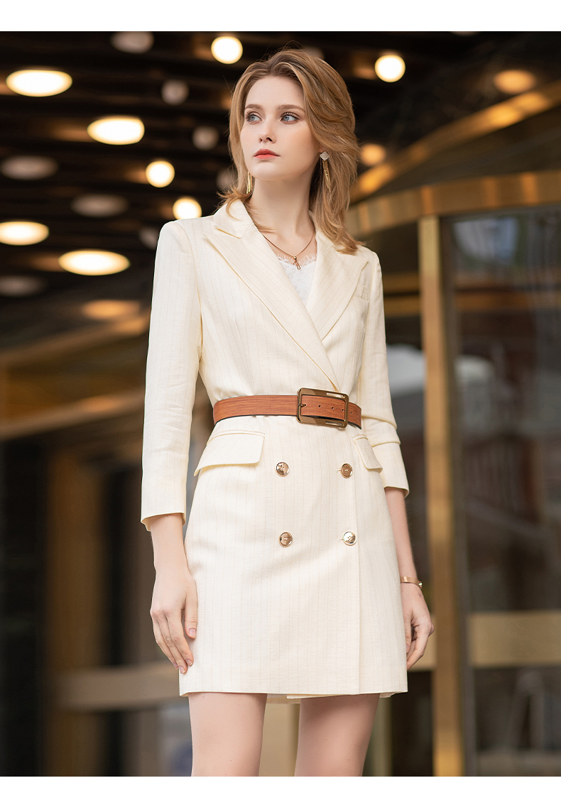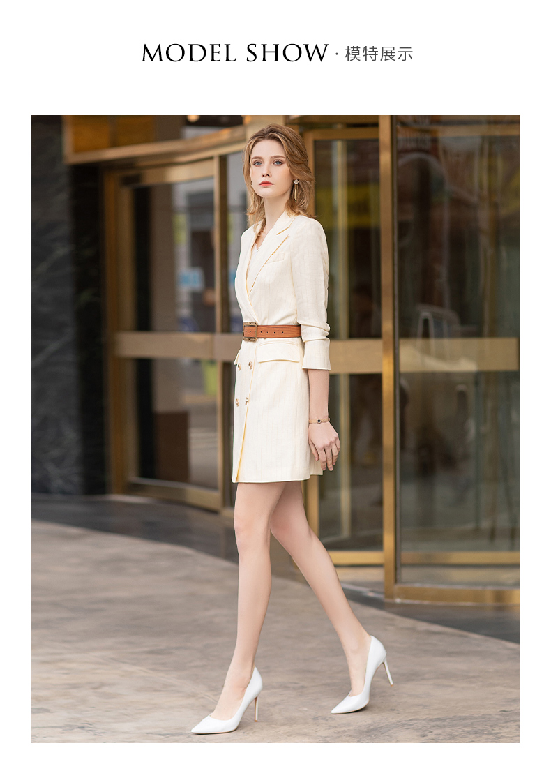 IWY/【预售一周】浅黄色七分袖都市时尚设计感职业女士西装连衣裙工作服上班职业装Q12128