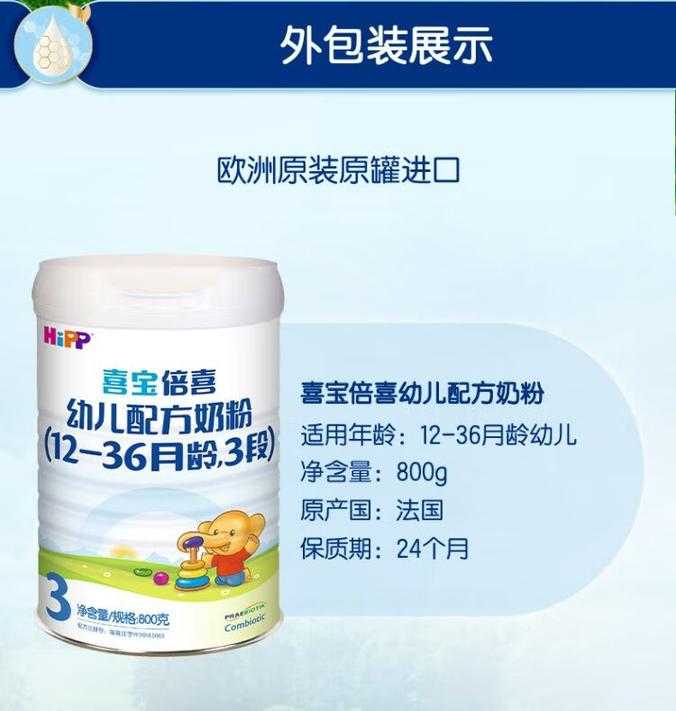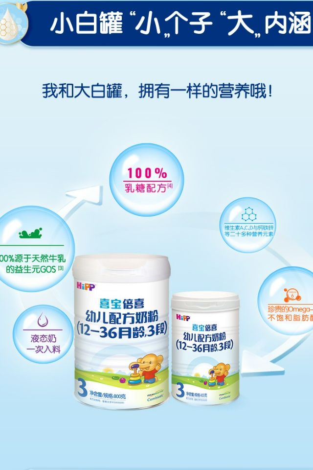 德国喜宝奶粉婴幼儿牛奶粉益生菌配方HIPP 3段400g