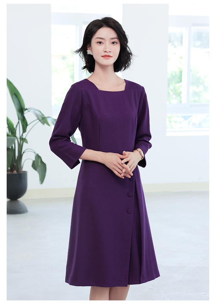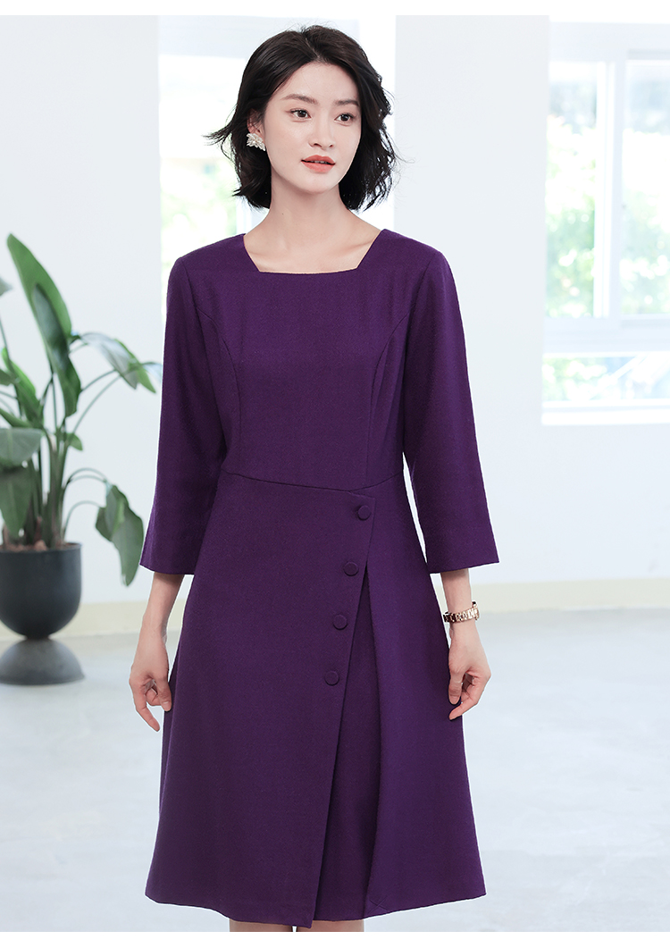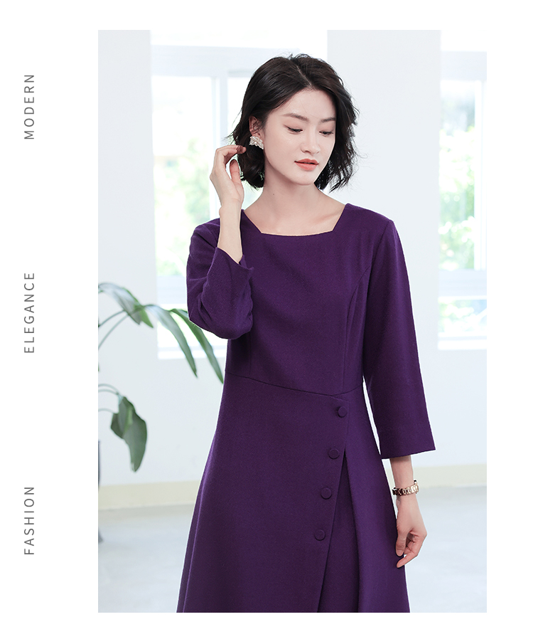 秋冬新款 气质纯色九分袖羊毛连衣裙女E04LL25
