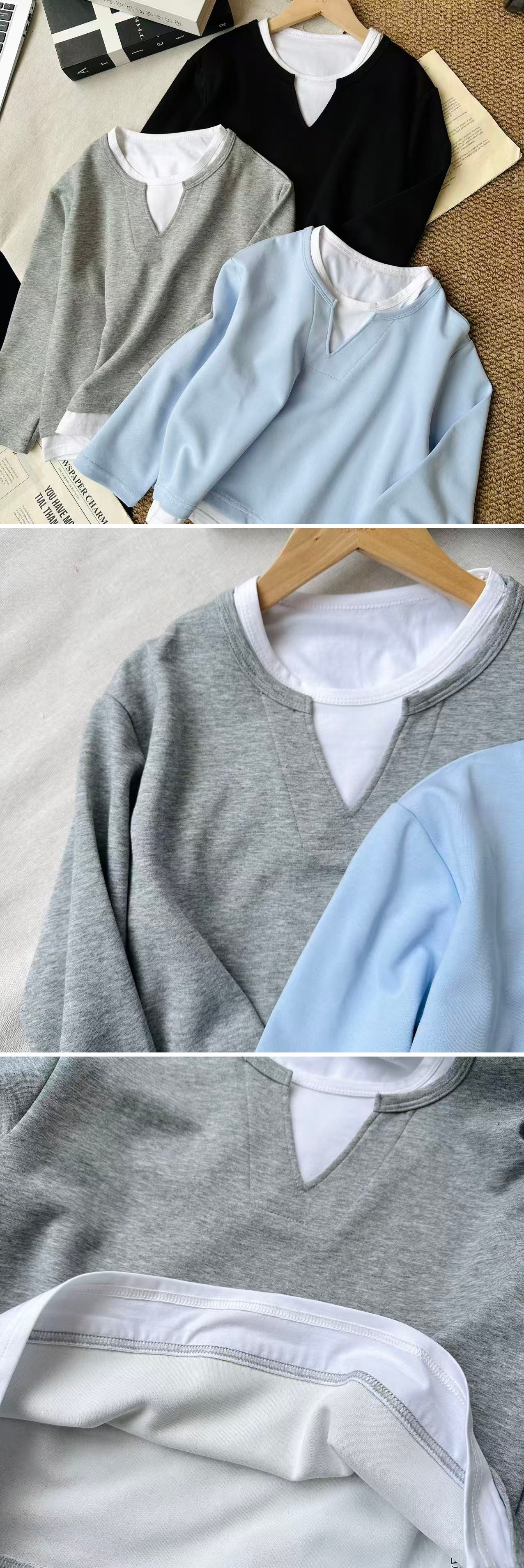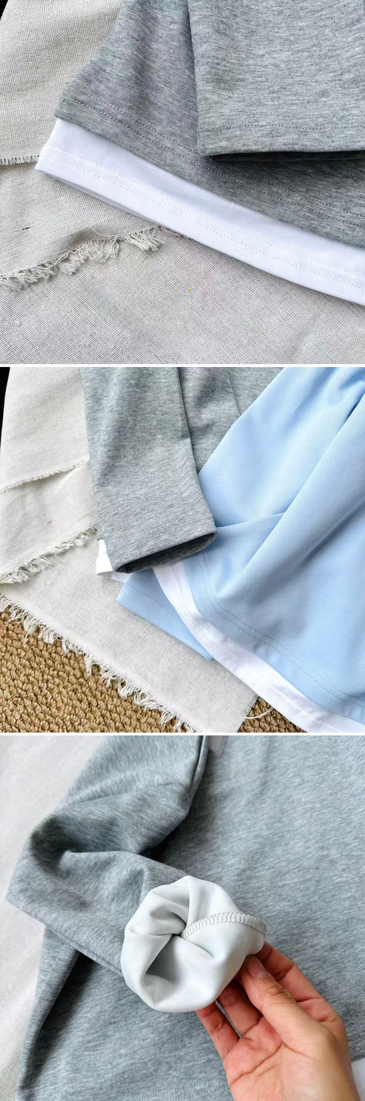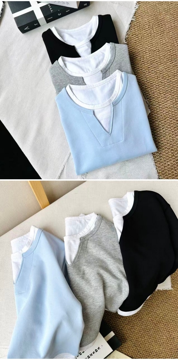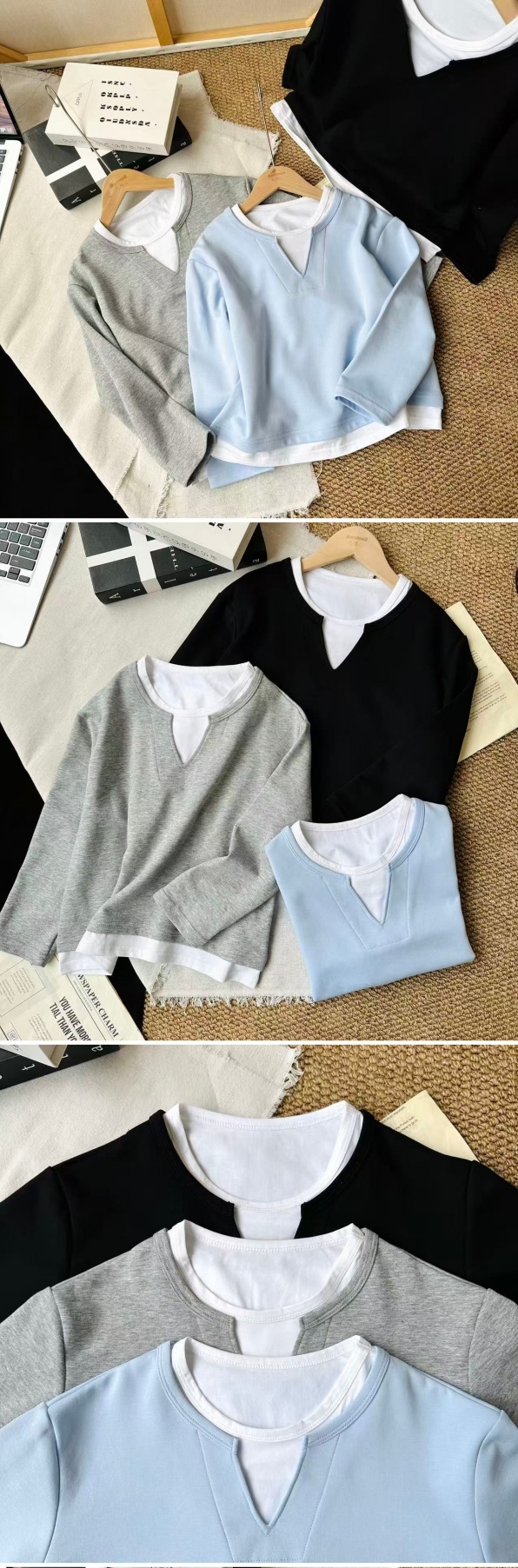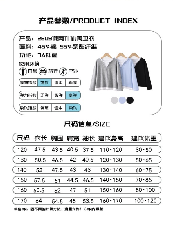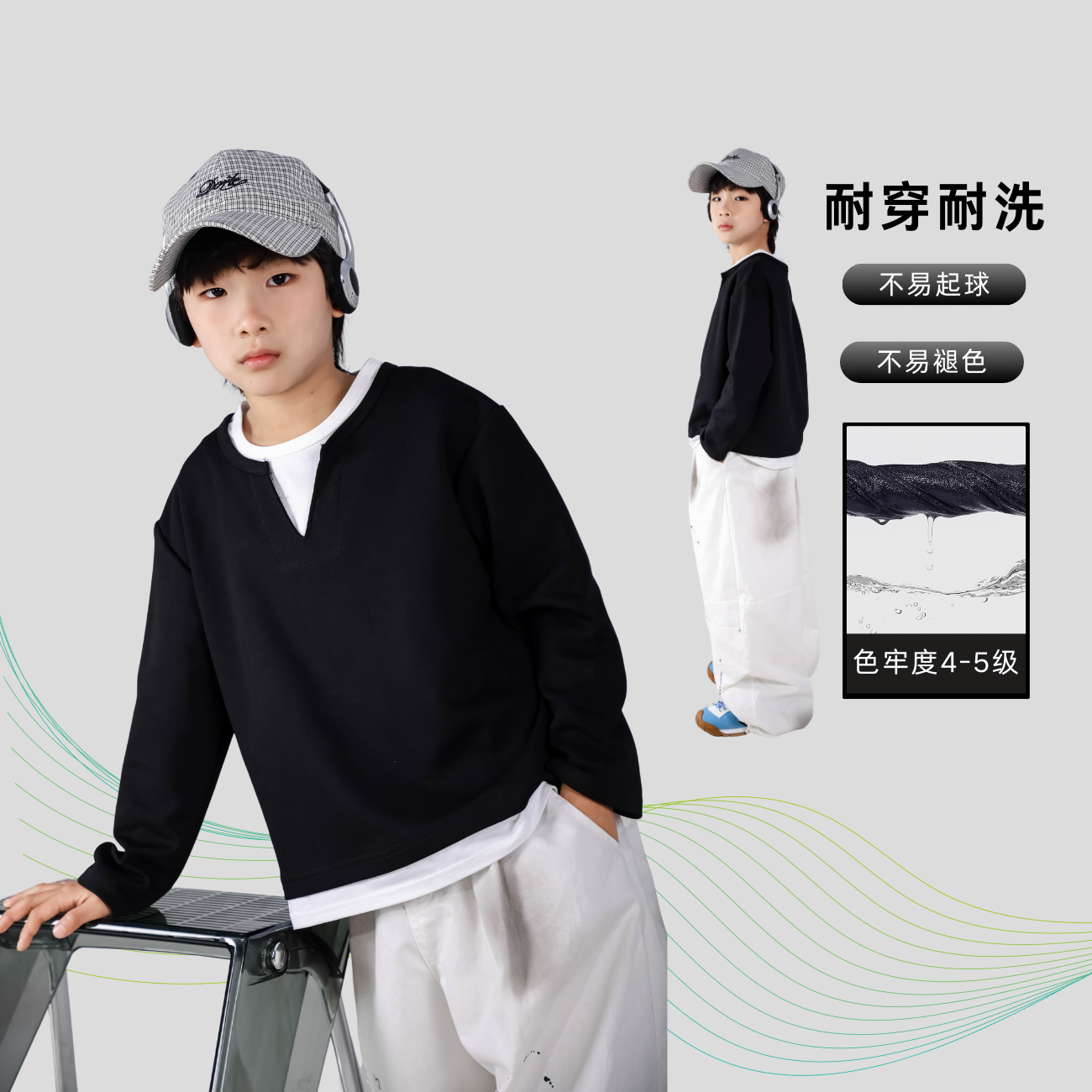 【MUBENMI木本木米2609假两件休闲卫衣】这件假两件卫衣我家娃穿了不想脱!韩系穿搭轻松拿捏,简单配色,是春天的“出场设置”,松弛感满满,穿上秒变韩系酷帅小孩~