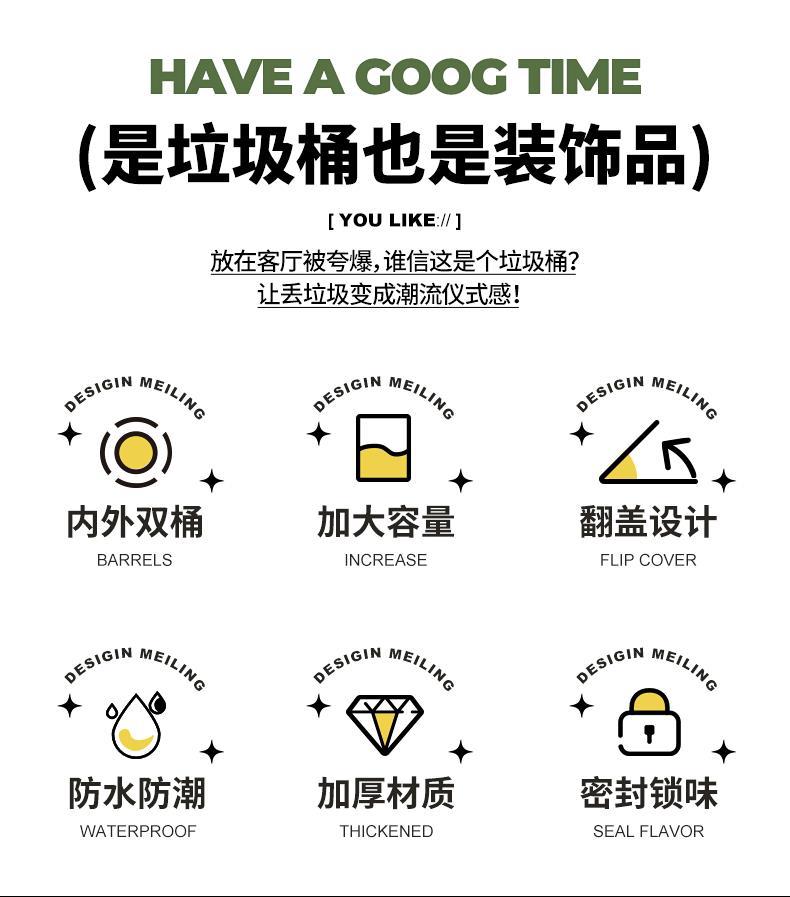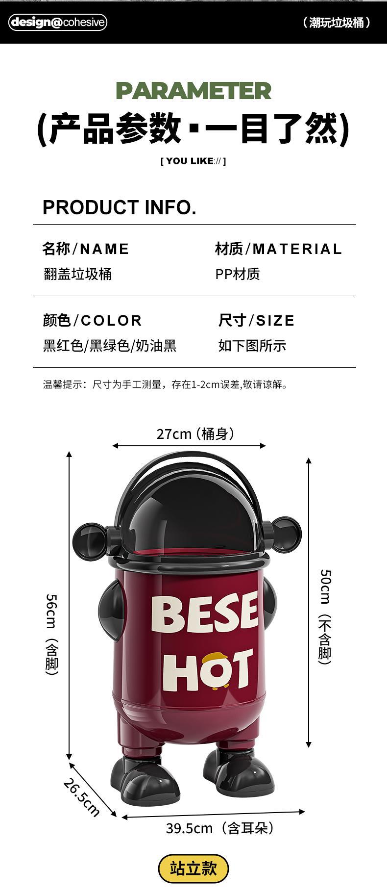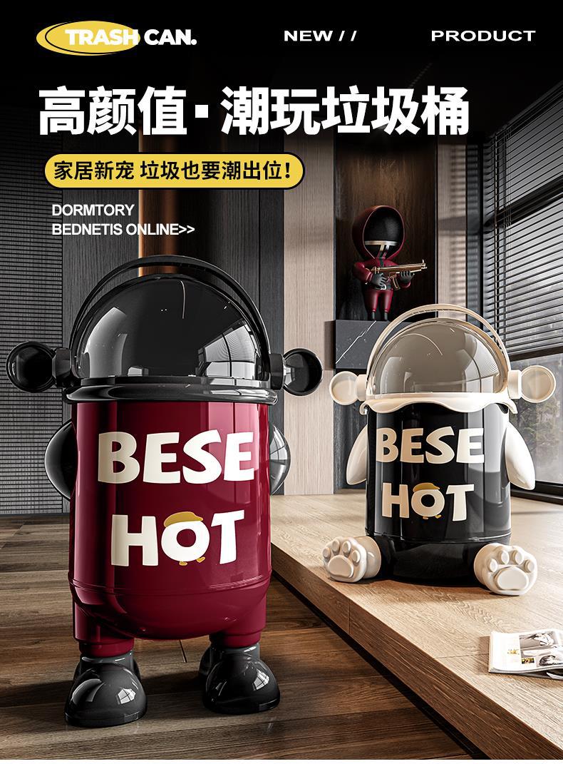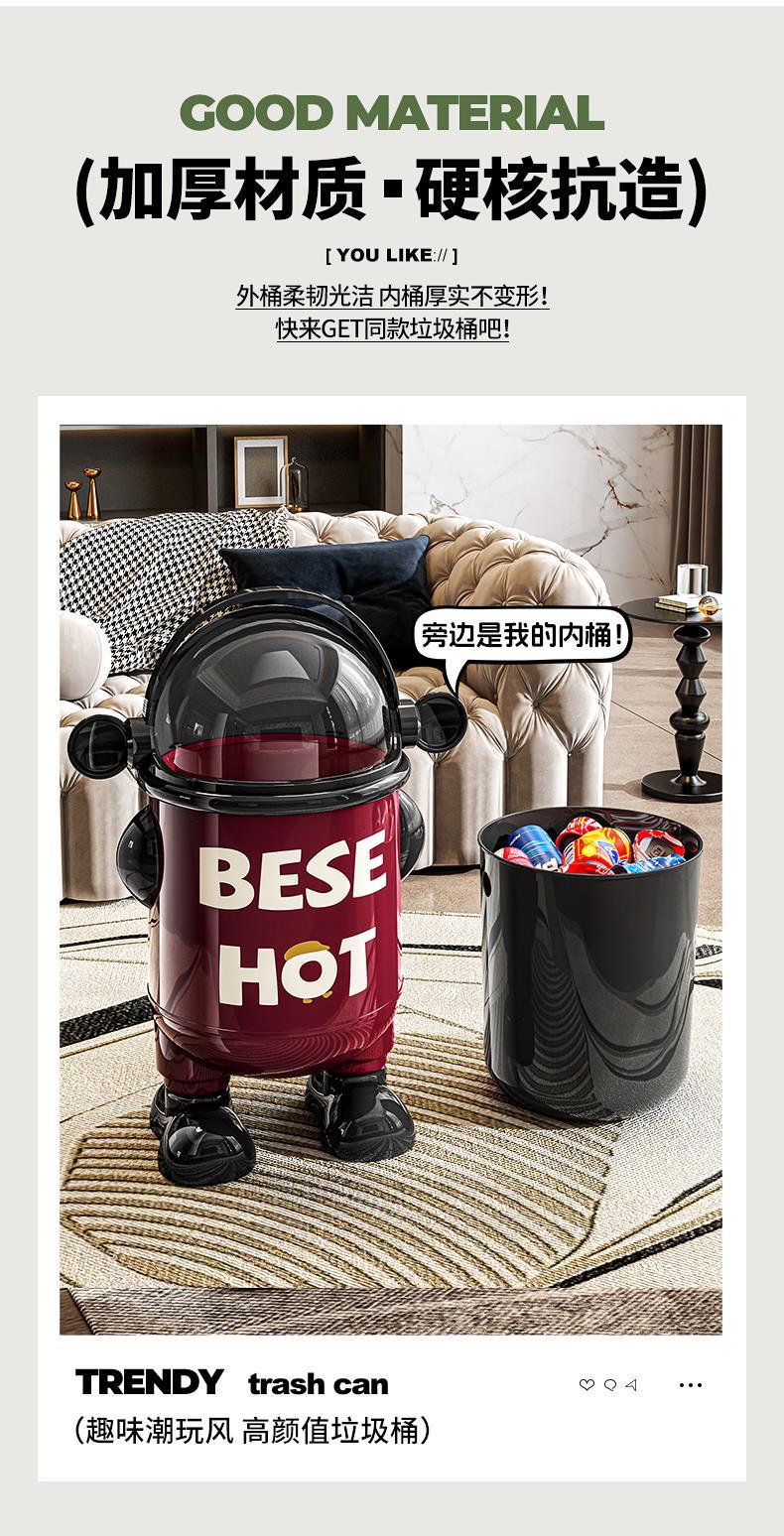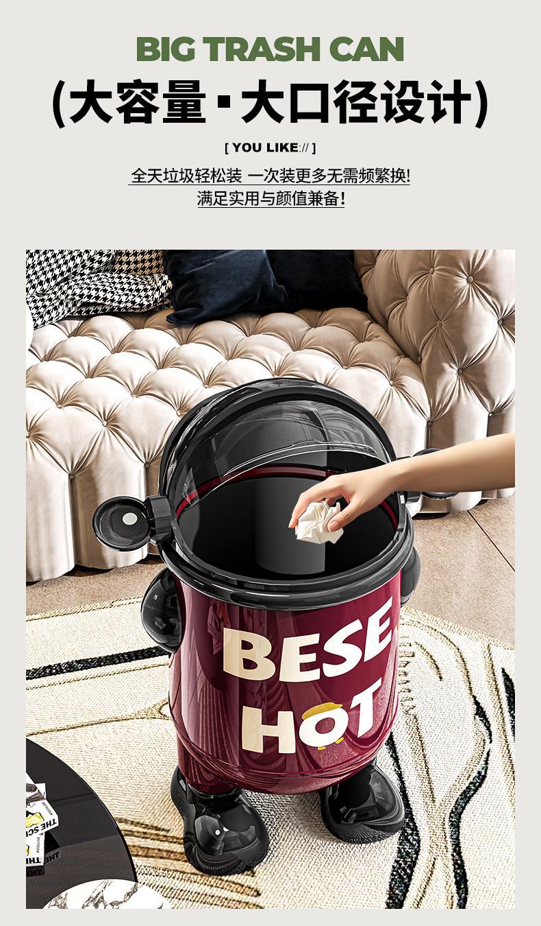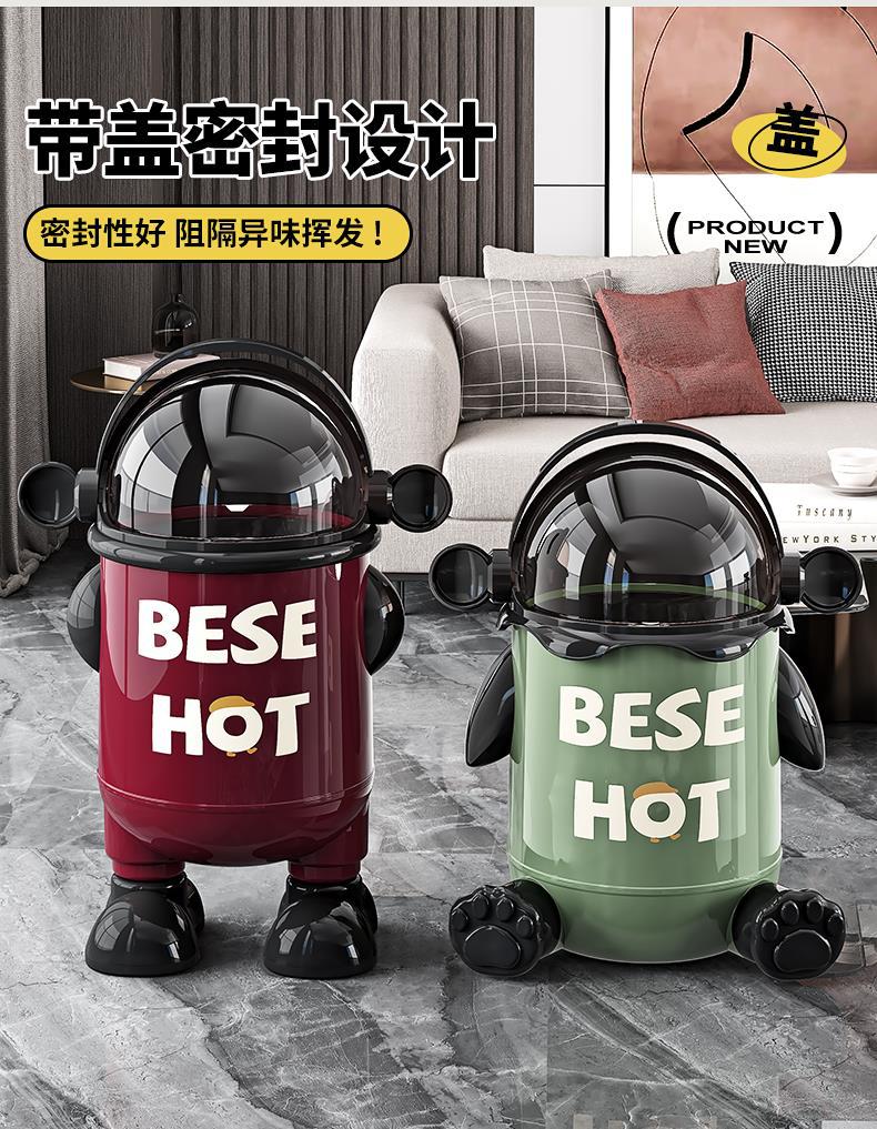 【加厚耐用材质❗️开合顺畅不卡顿】垃圾桶家用2025新款创意可爱高颜值带轮客厅厨房卧室卫生间收纳桶。ja