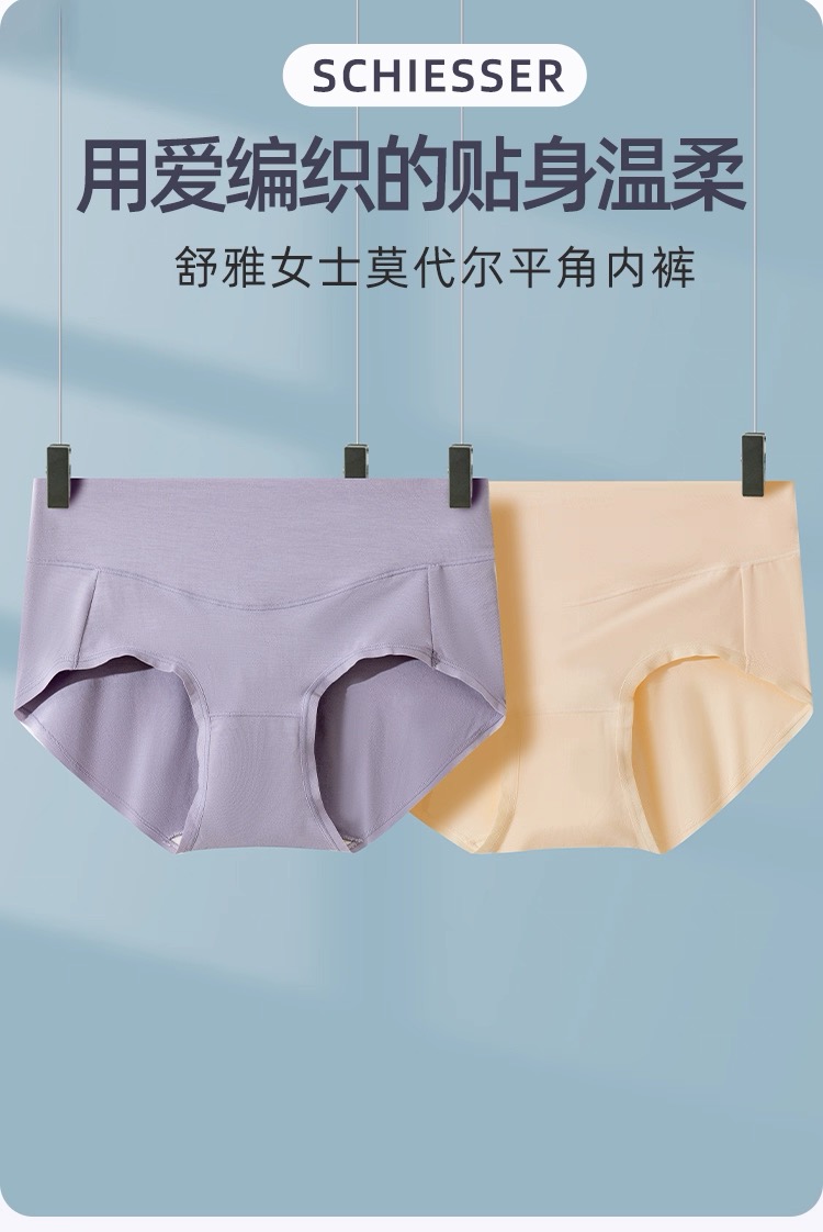 【莫代尔蚕丝底裆中腰】SCHIESSER德国舒雅女士莫代尔中腰蚕丝底裆平角裤(1条装)20/20761T