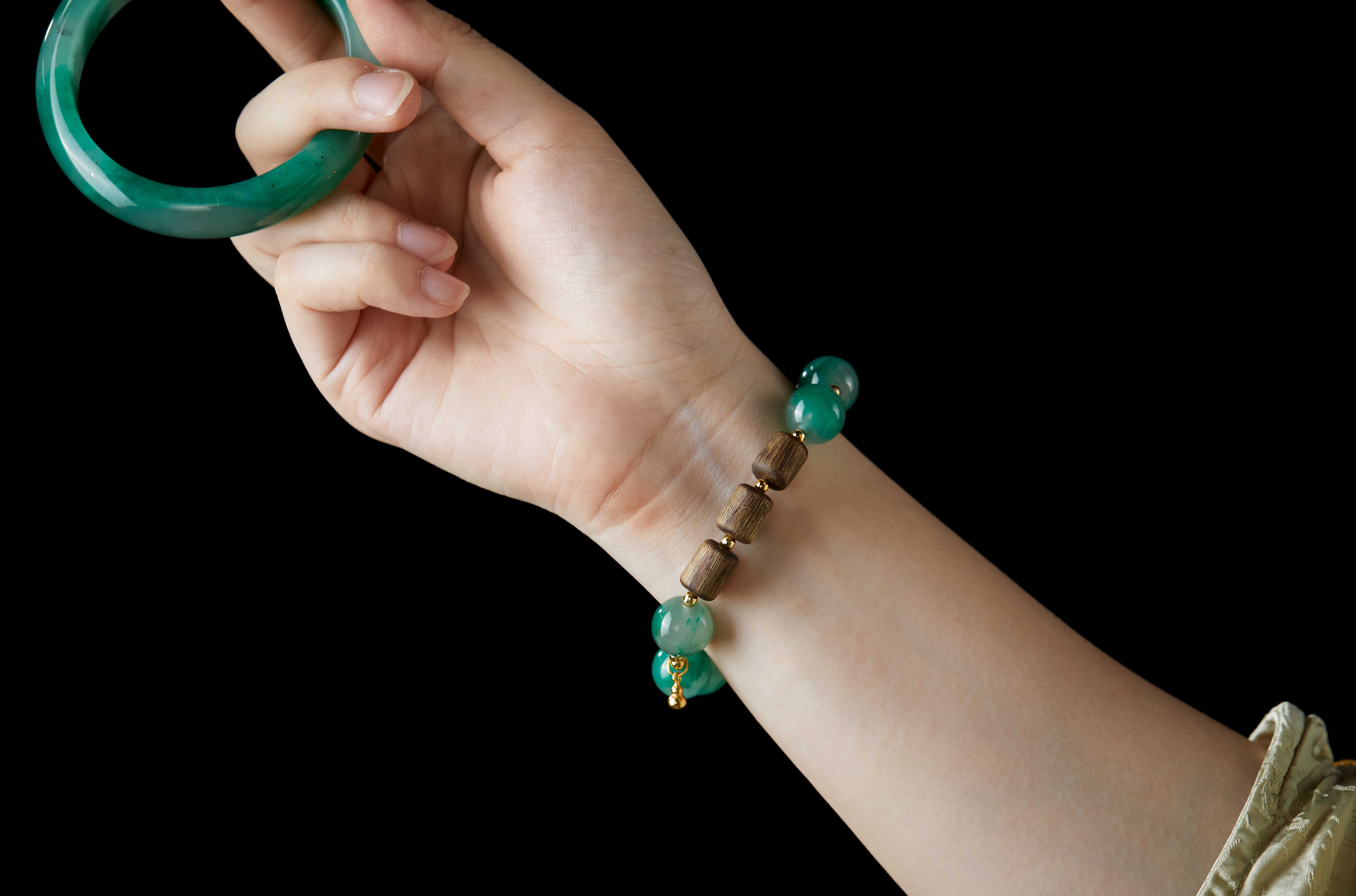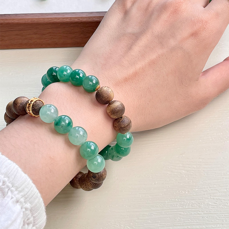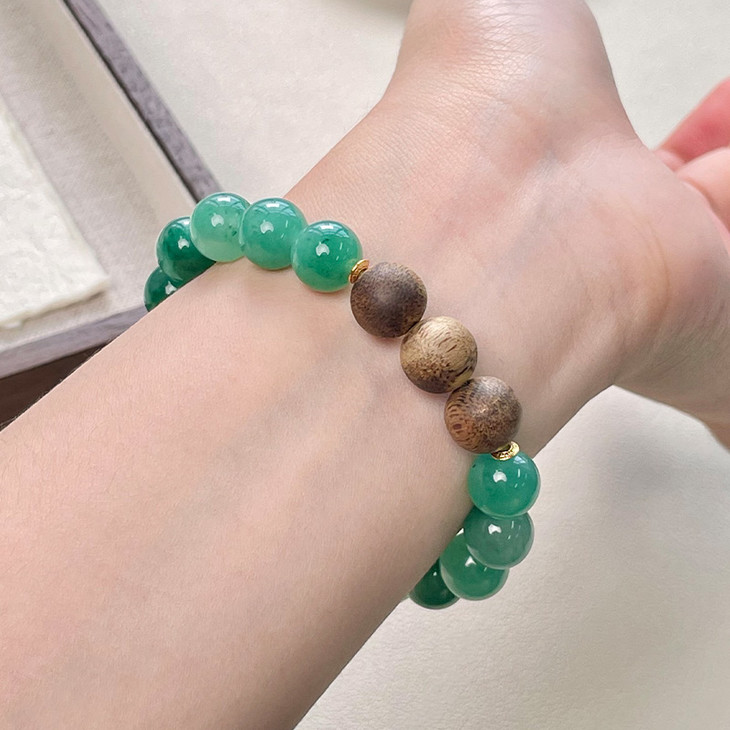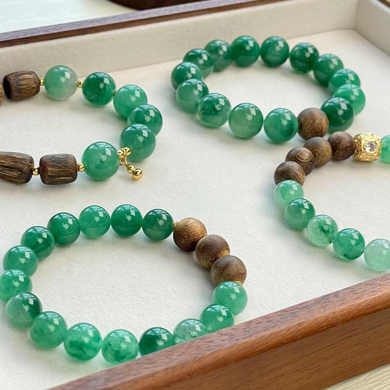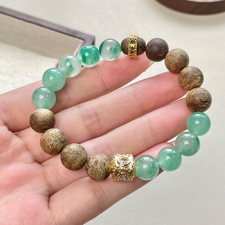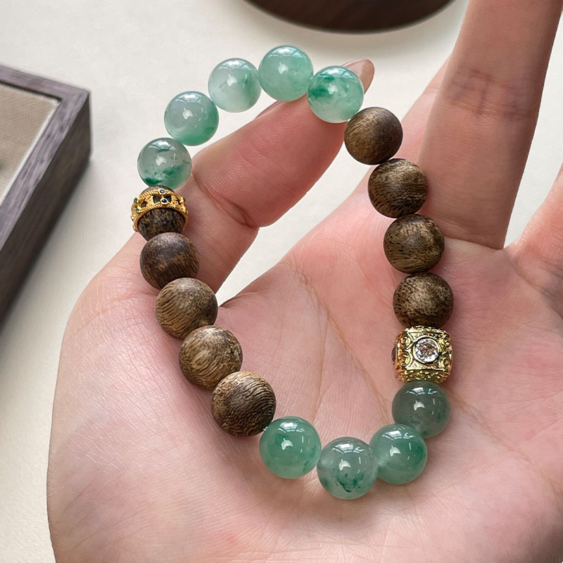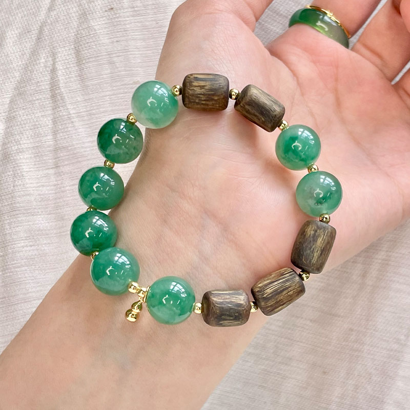 与奇楠沉香珠相搭,一半沉香一半翡,戴在手上就像置身大森林之间的气息,更浓郁的沉香韵味。