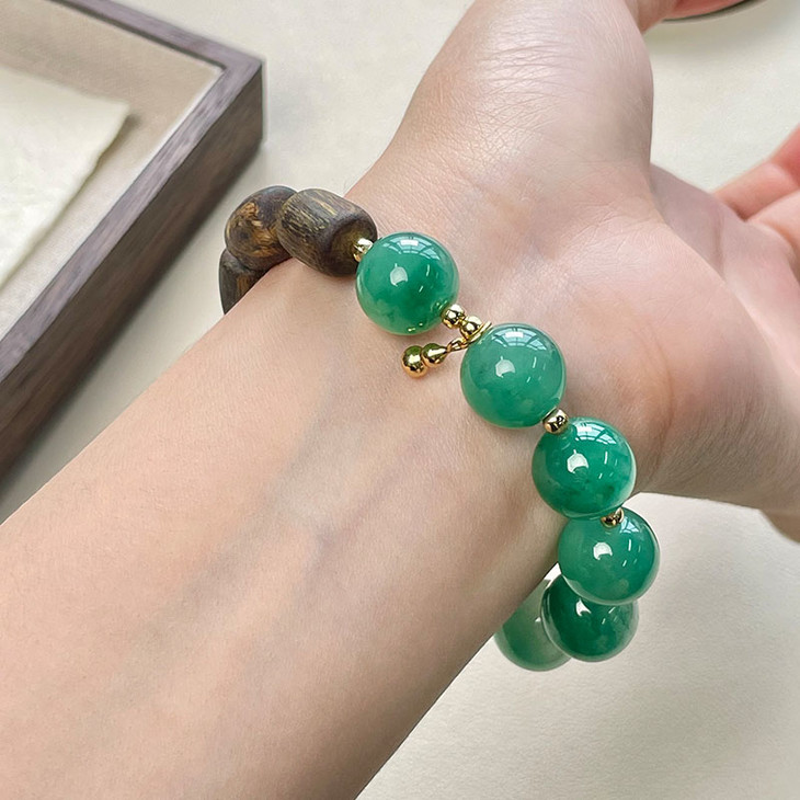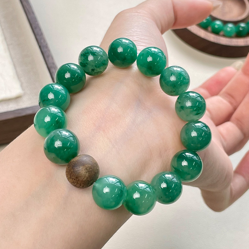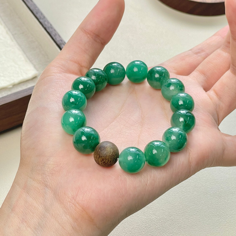 这款手串选用12mm更为难得的大珠入串,冰油水透,每一颗非洲翠珠都有别致的迷你风景。