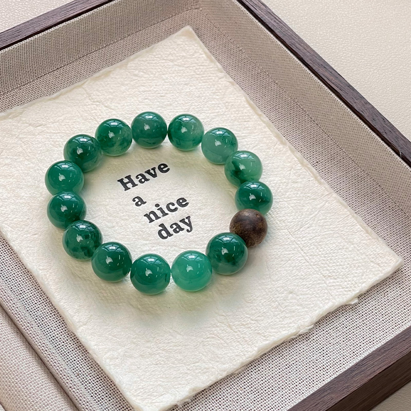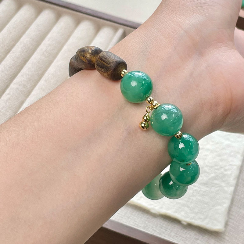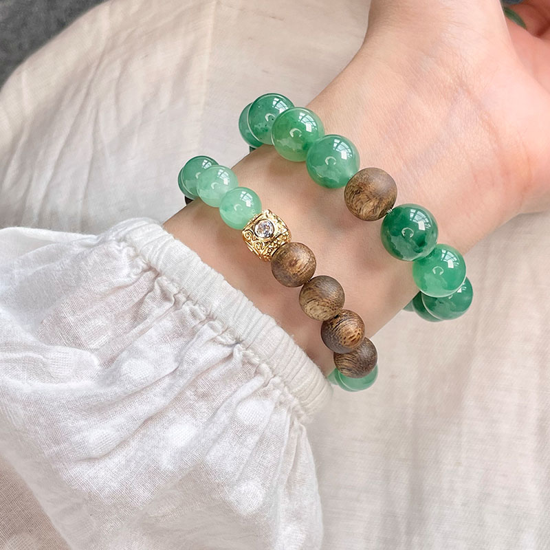 12mm的非洲翠手串,搭配一颗同样是12mm的沉香珠,很适合儒雅的男性,新中式老钱风扑面而来。