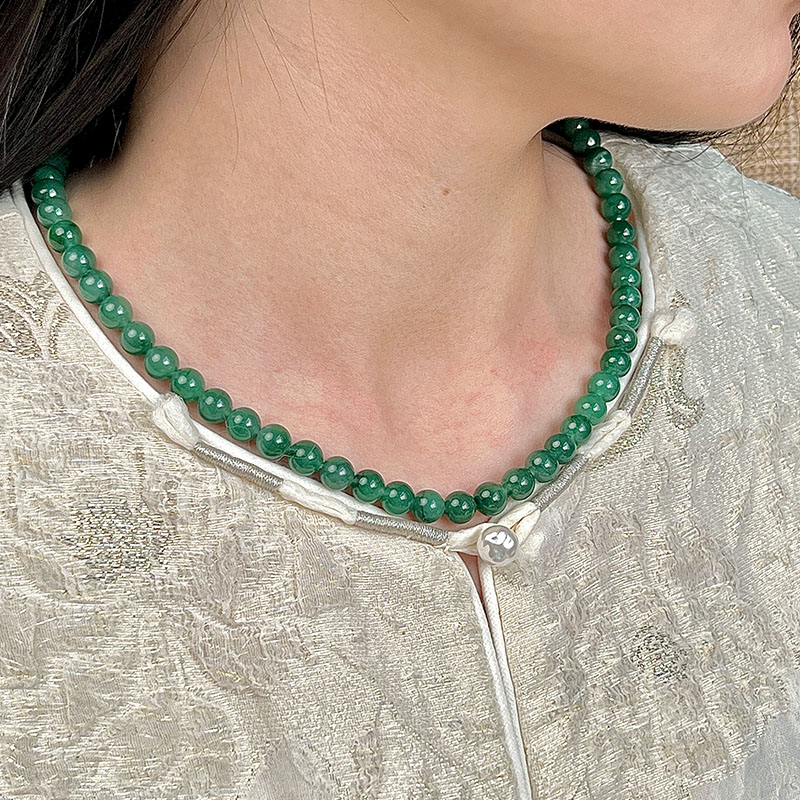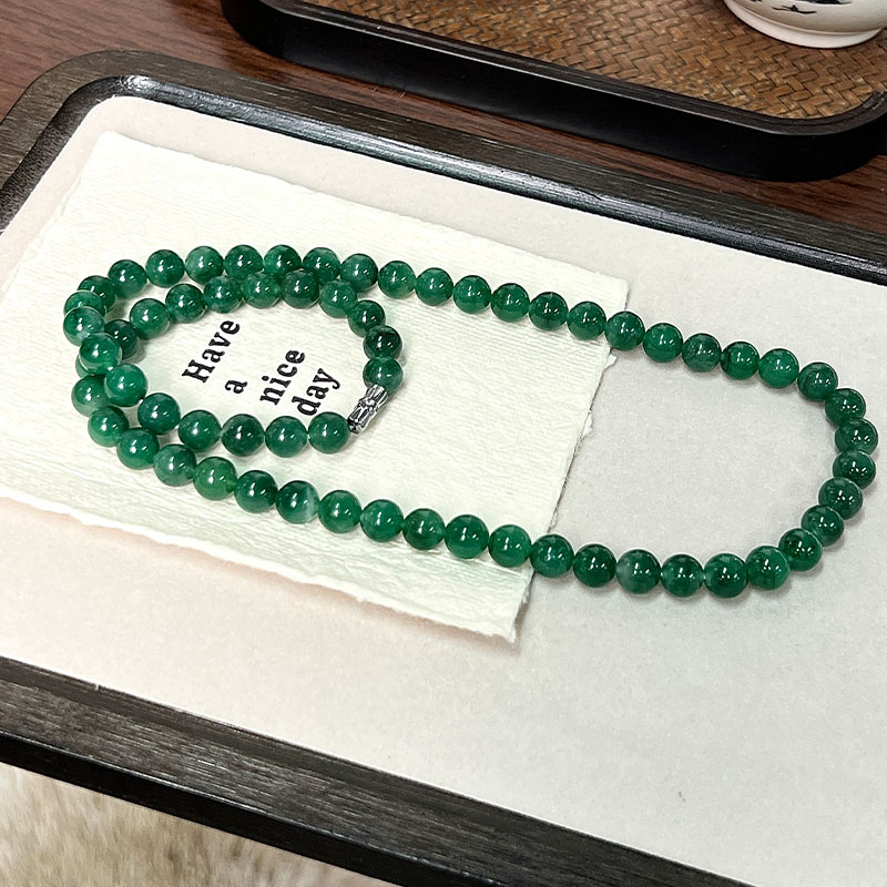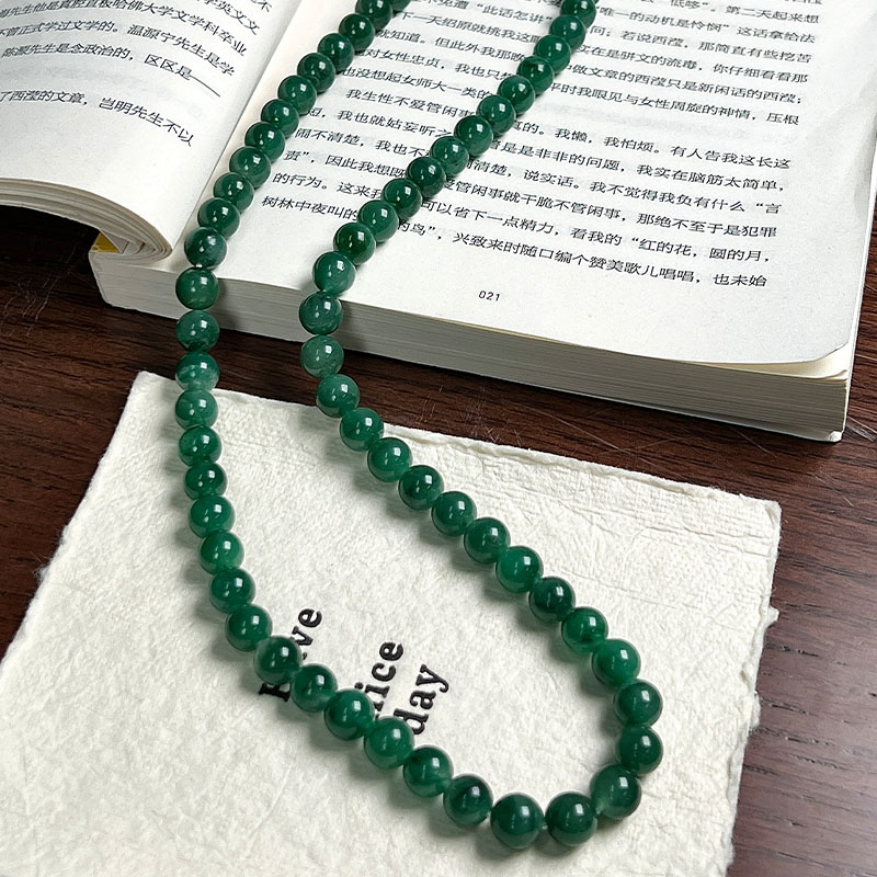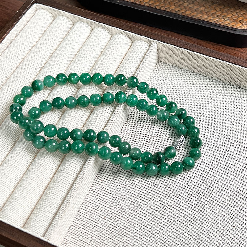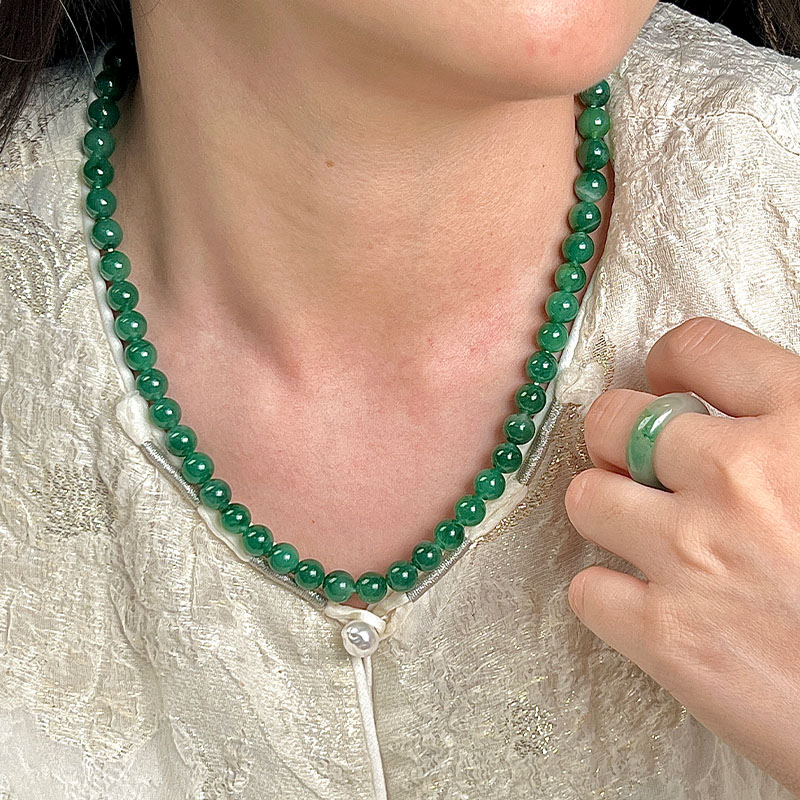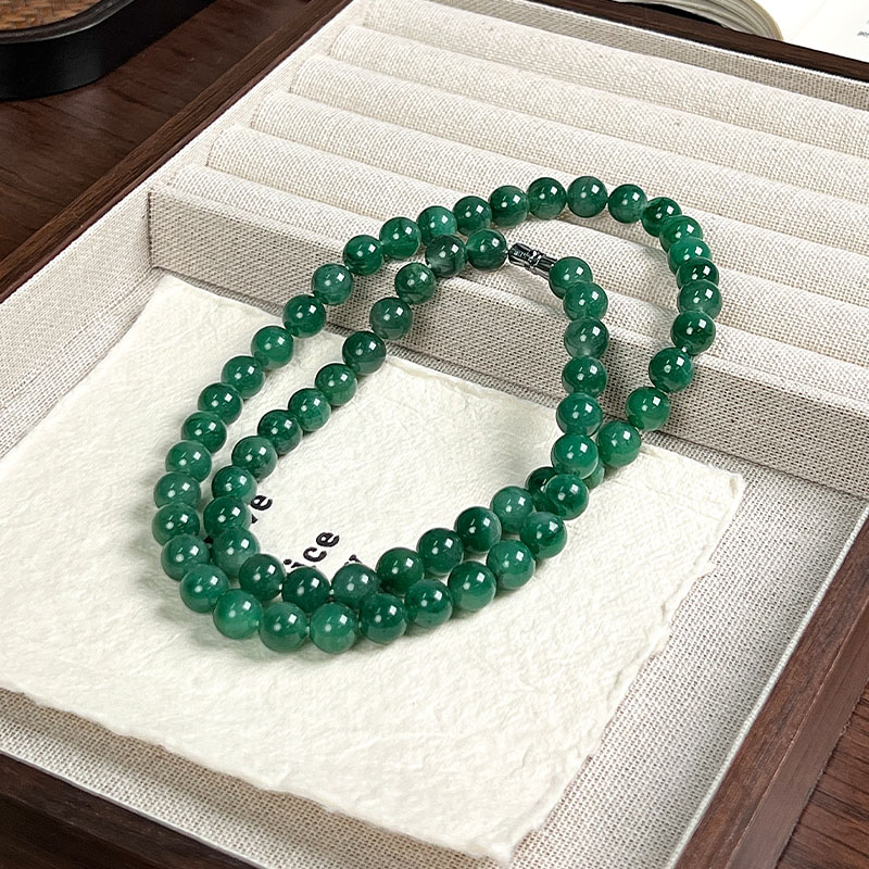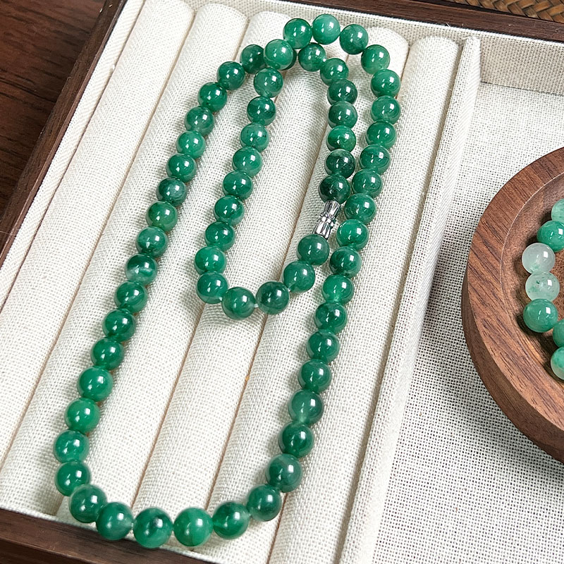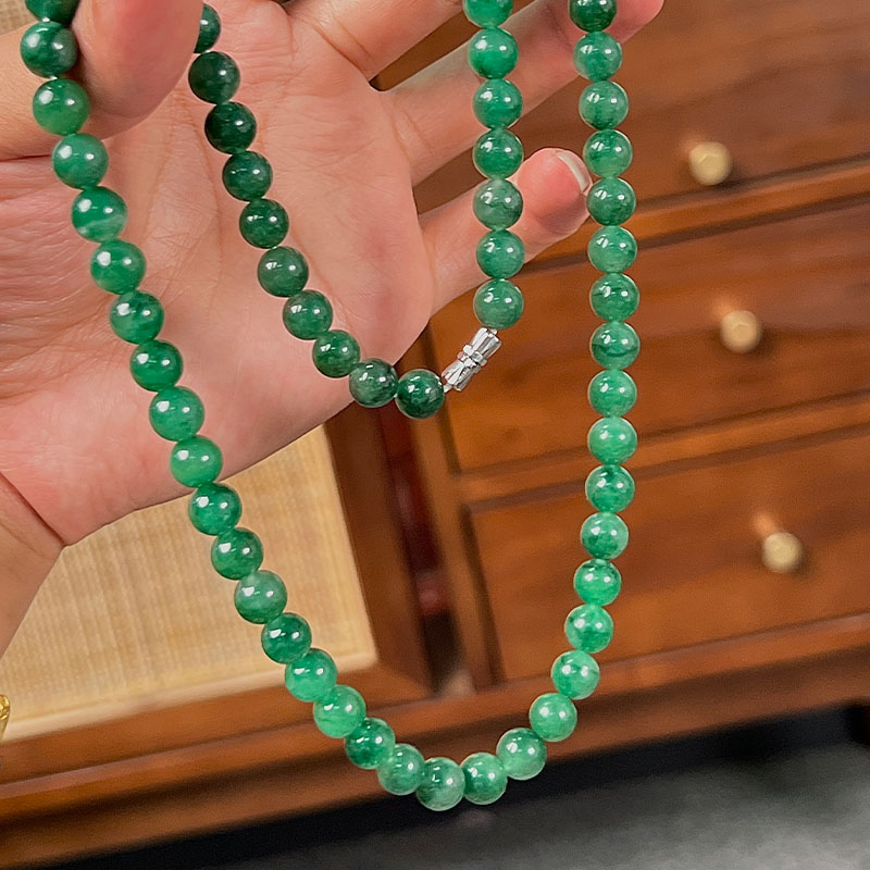 如果你觉得上一条还不够贵气,那看看这条吧,8mm的珠径作为项链就真的很珠宝,不是翡翠胜似翡翠。