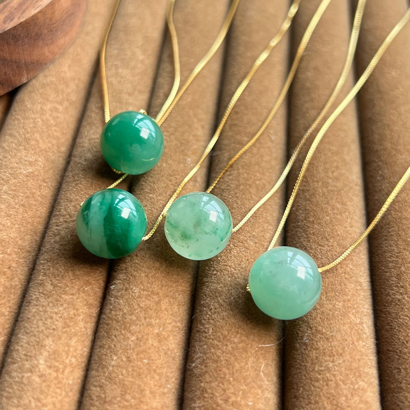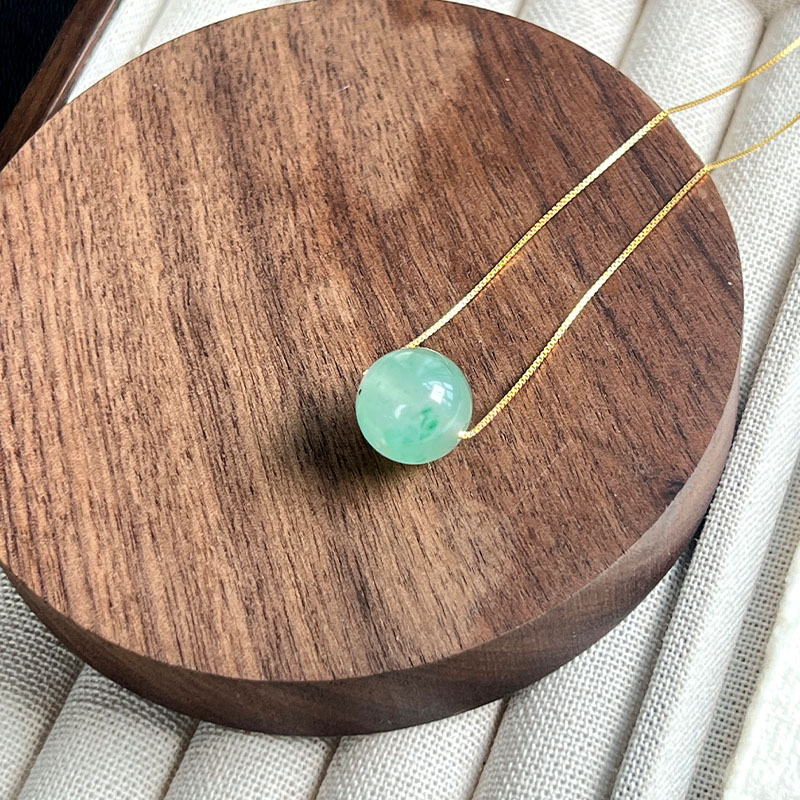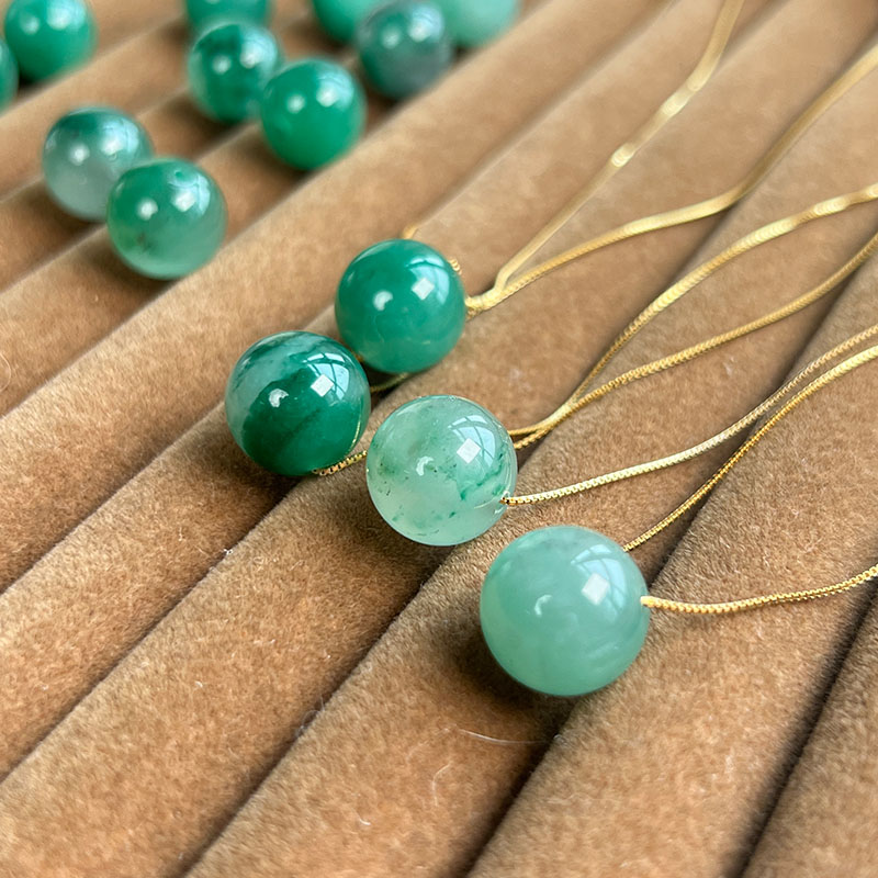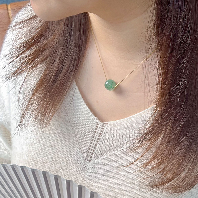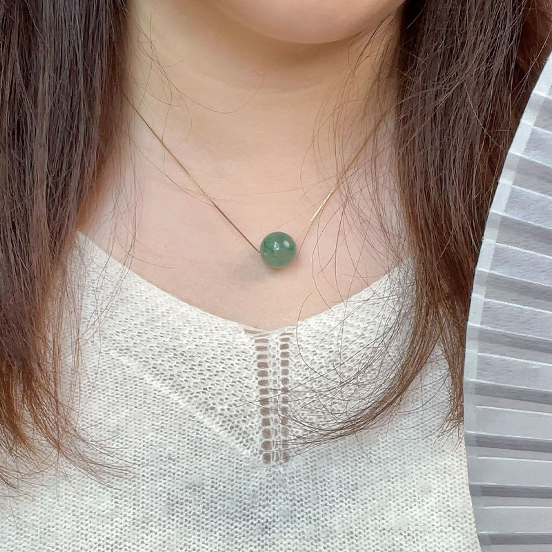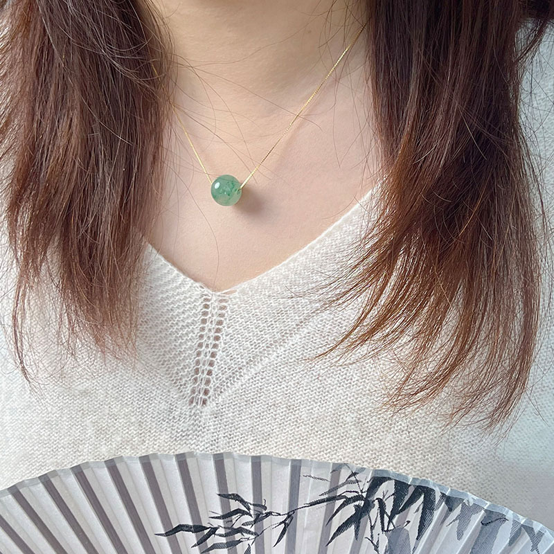 这款路路通吊坠项链,高冰种飘花阳绿或满绿,每一颗珠子都独一无二,色泽鲜艳。