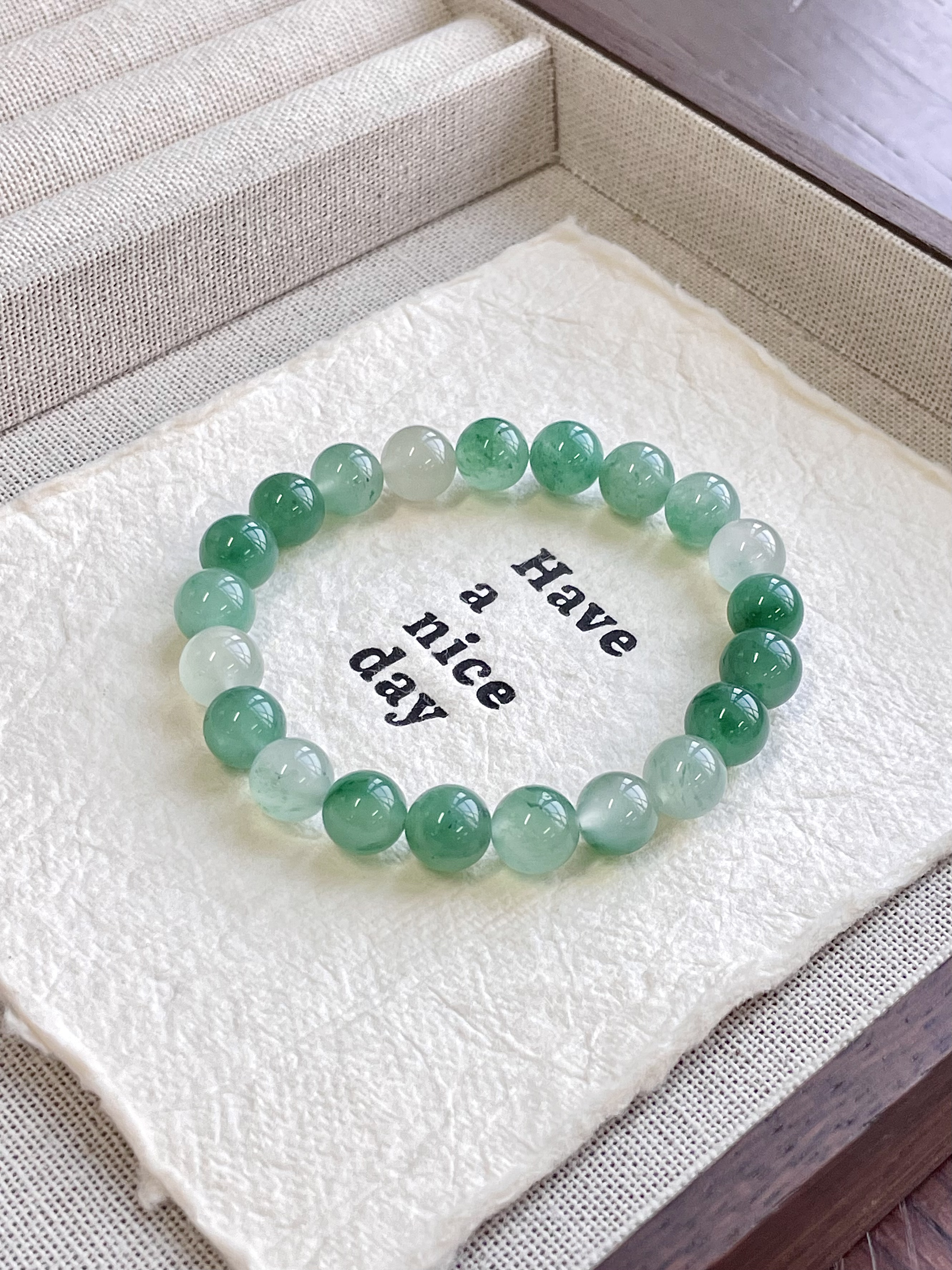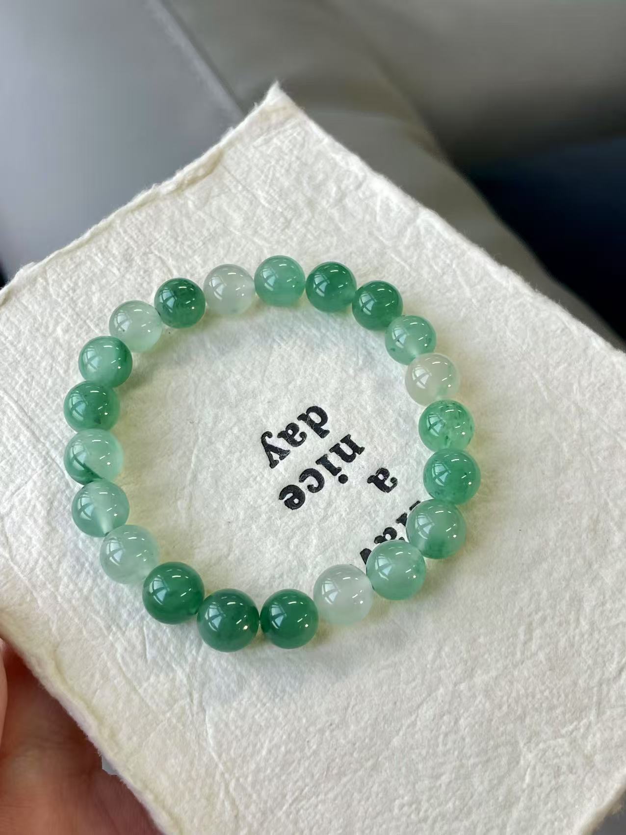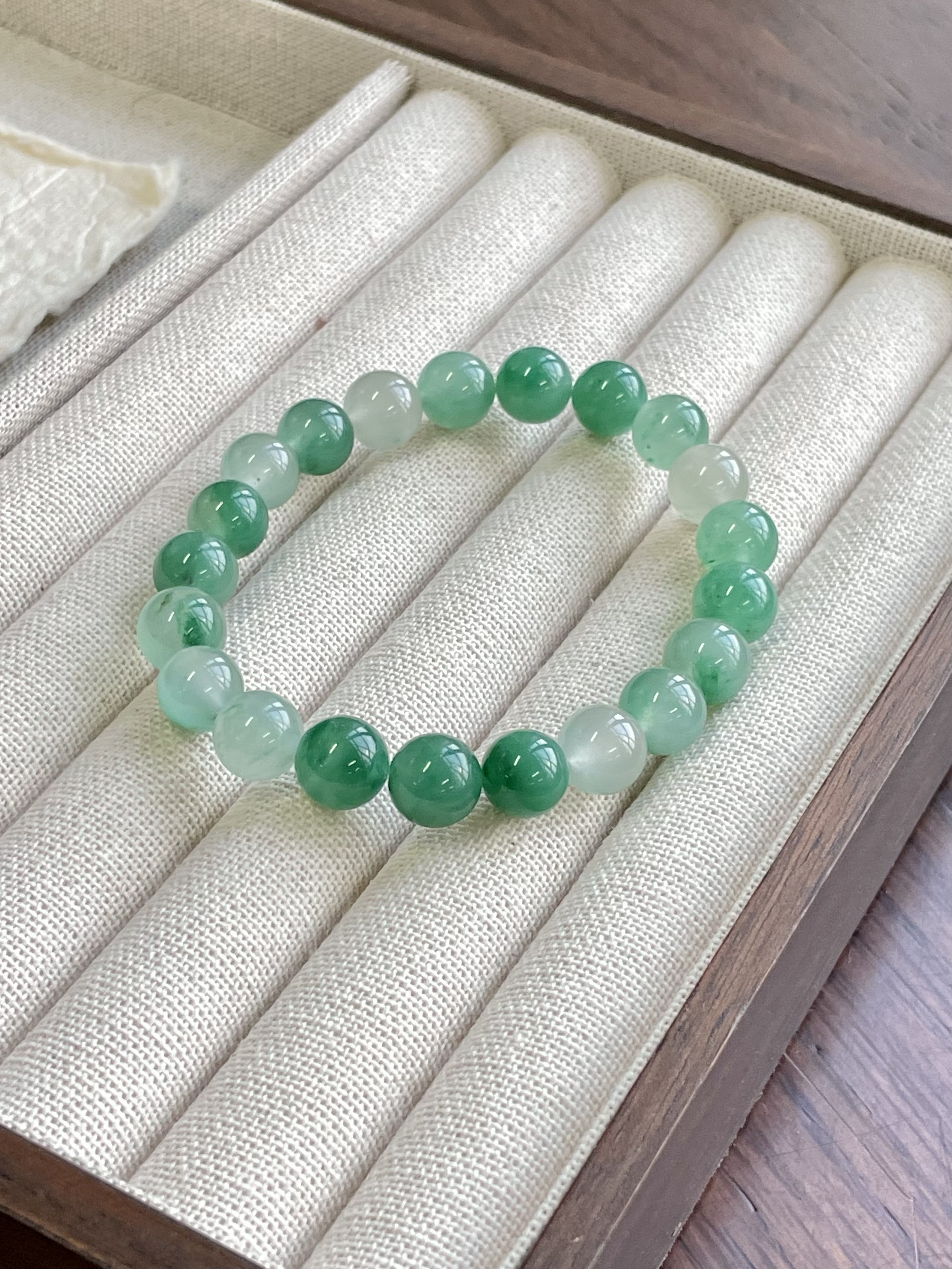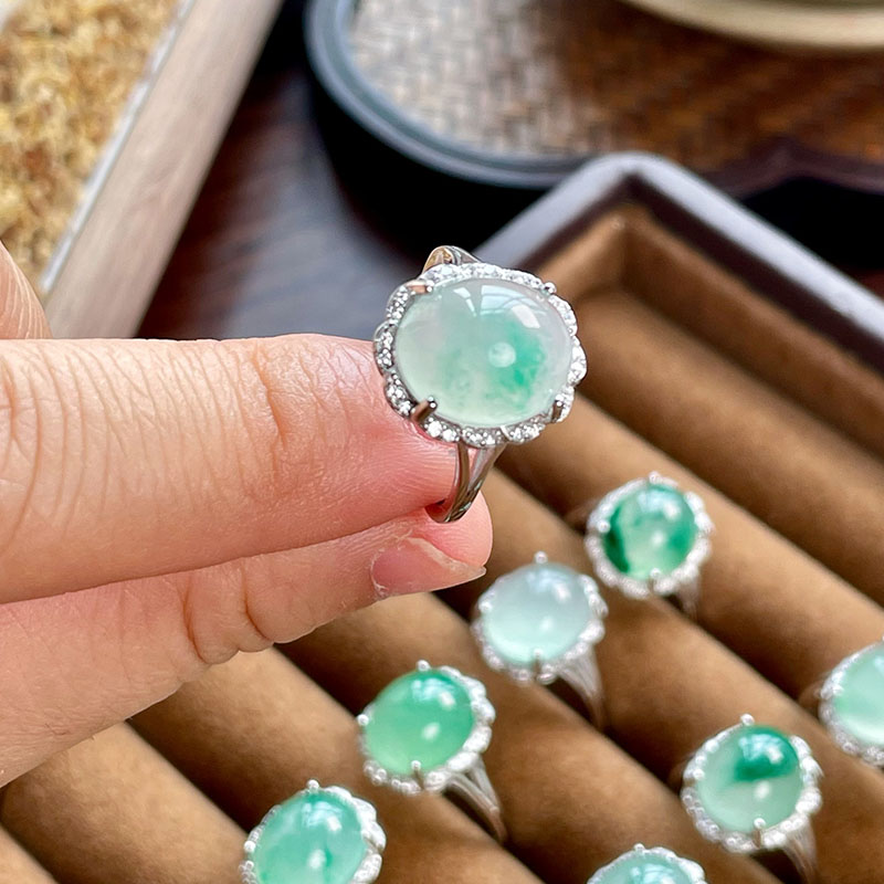 这款冰种飘绿,就像一汪清泉,亦似青山云雾,每一颗都独一无二。