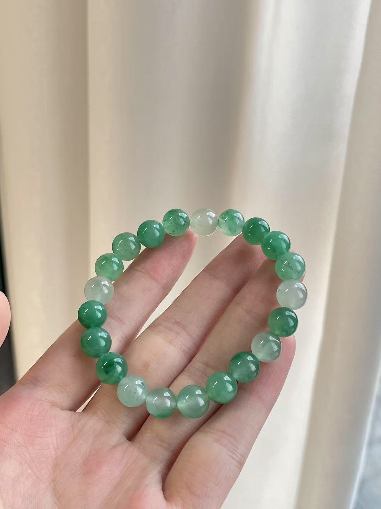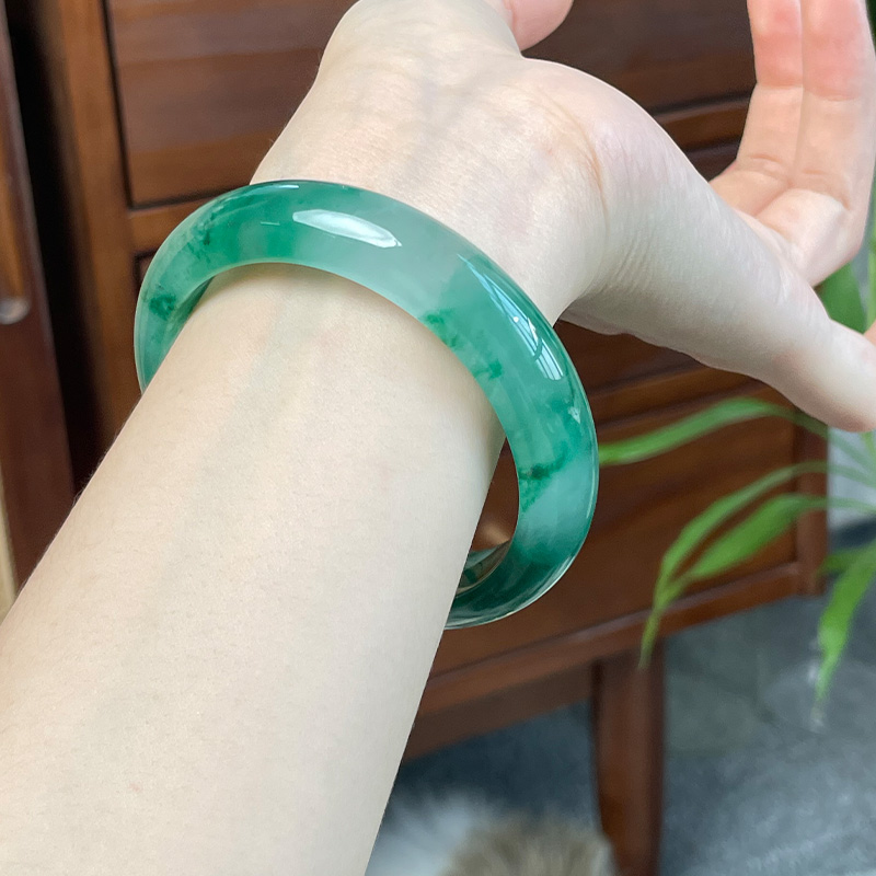 这水头、这色泽,在自然光下那叫一个绝,莹莹润润的,就像把春日的盎然绿意都锁在里头了。