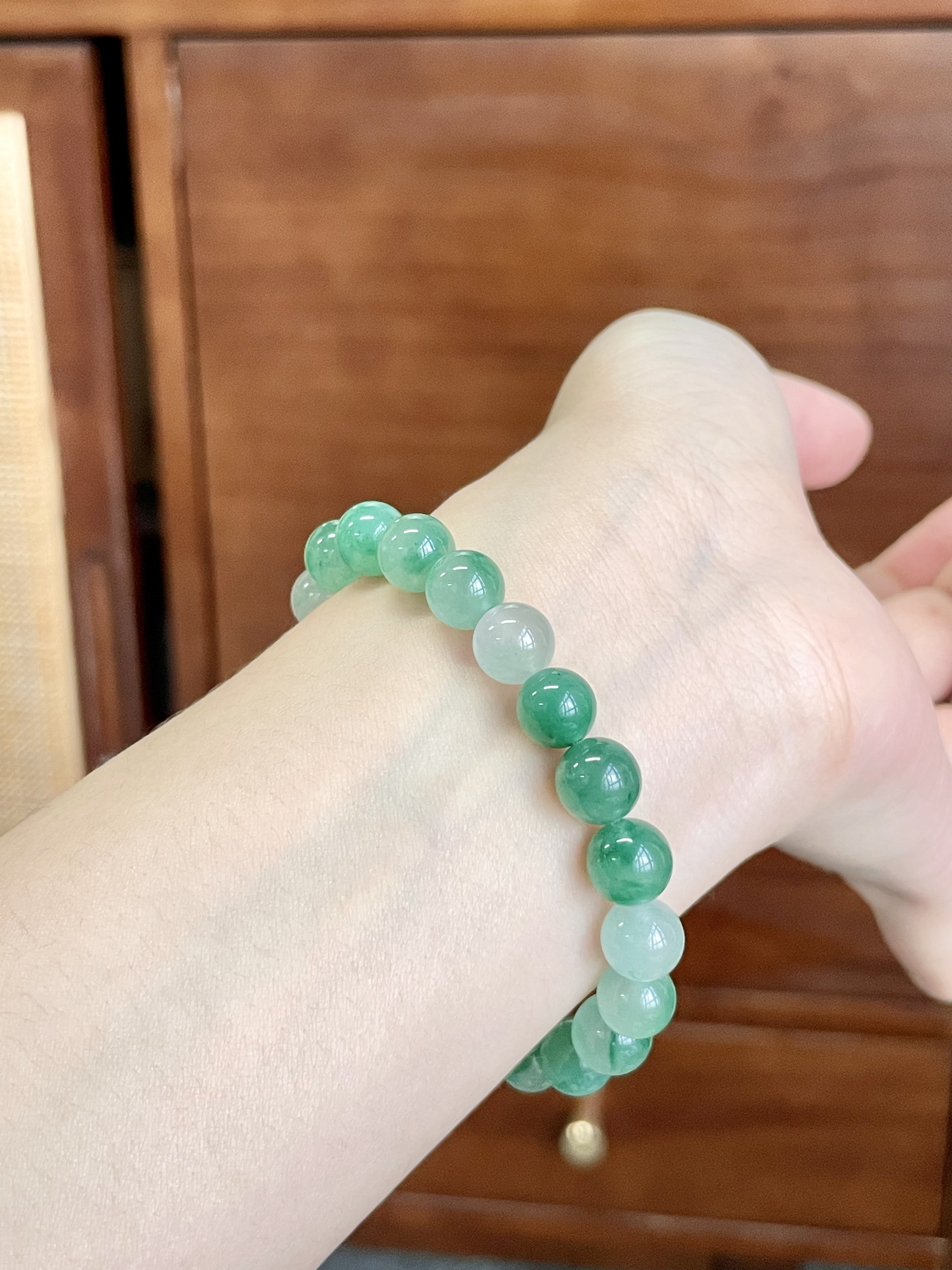 越大珠径的非洲翠手串,越值得你细细观赏与盘玩,每一颗珠子都有独特的纹理和色泽,像一幅天然画卷,每次你指尖拨动就能转换的风景。