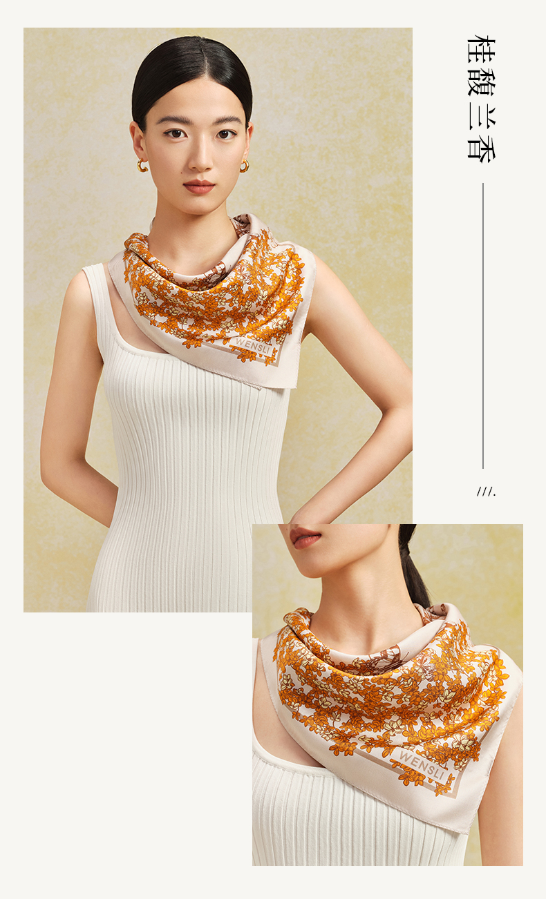 【线上专款】春夏新品双面印花中方巾-桂馥兰香