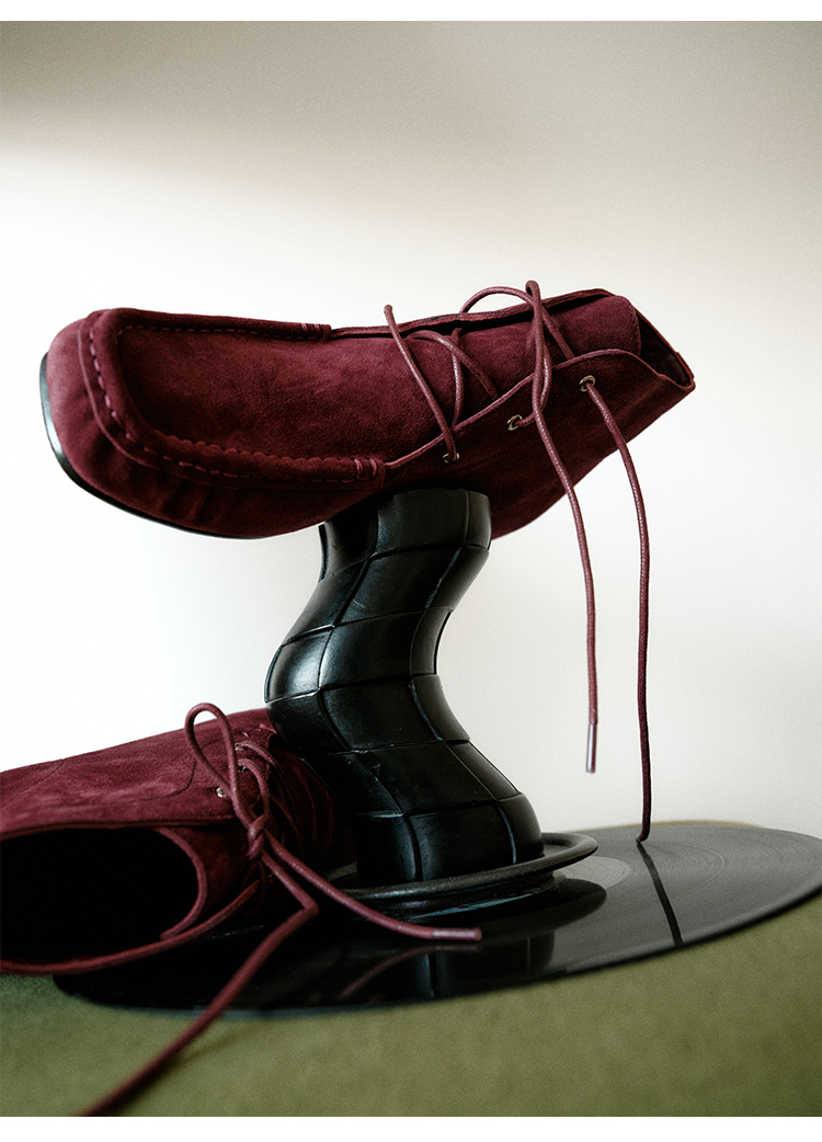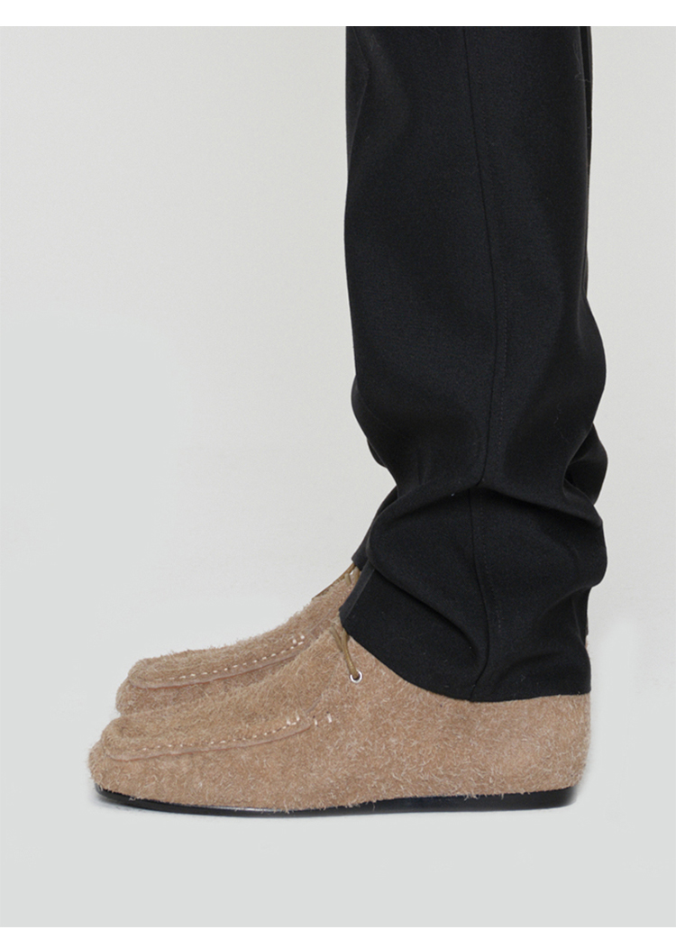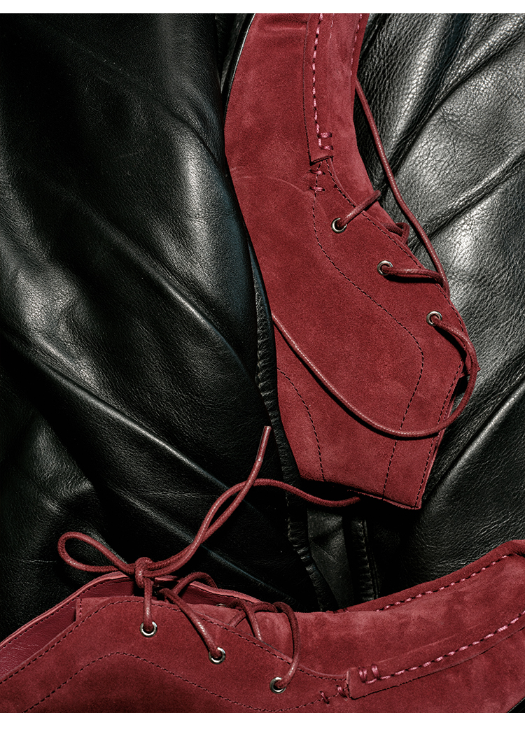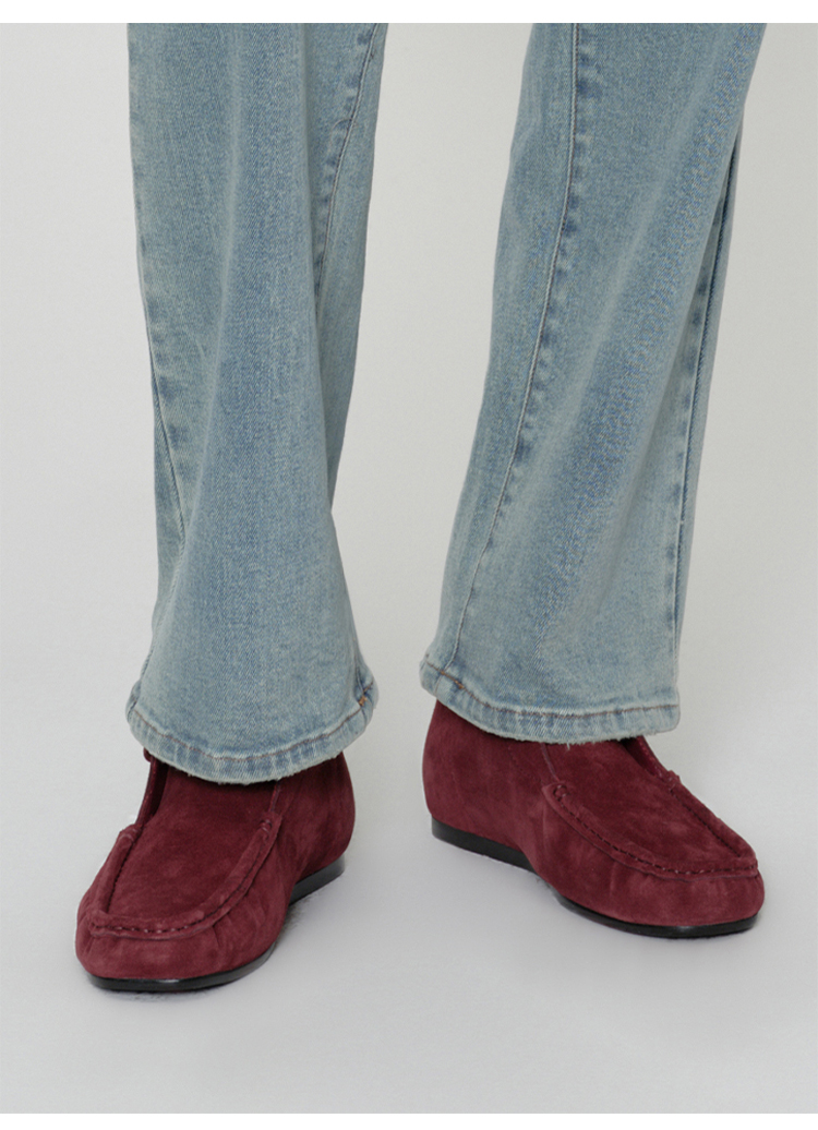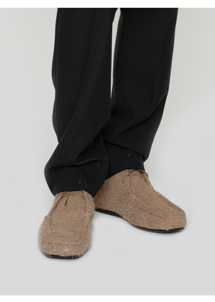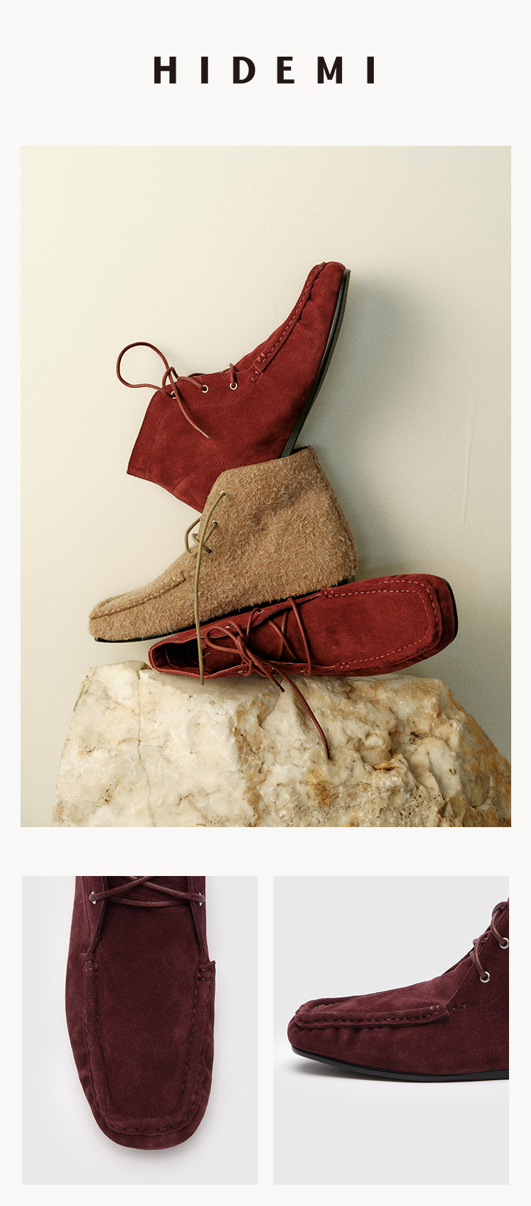 HIDEMI 系带复古做旧感进口磨毛牛反绒牛皮中帮方头内增高式踝靴短靴 卡其米/勃艮第酒红