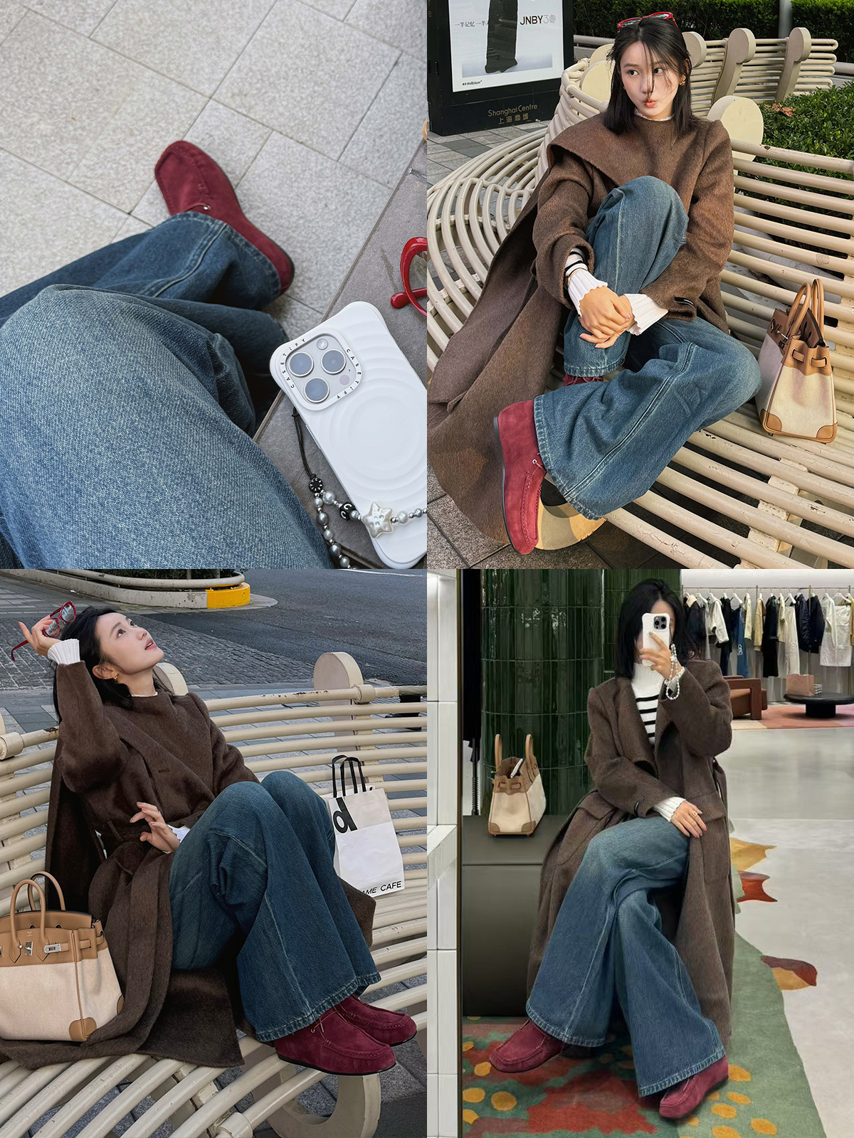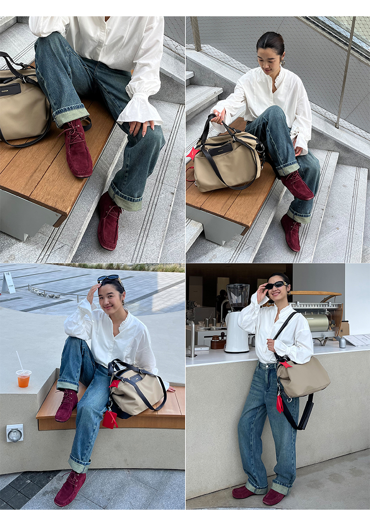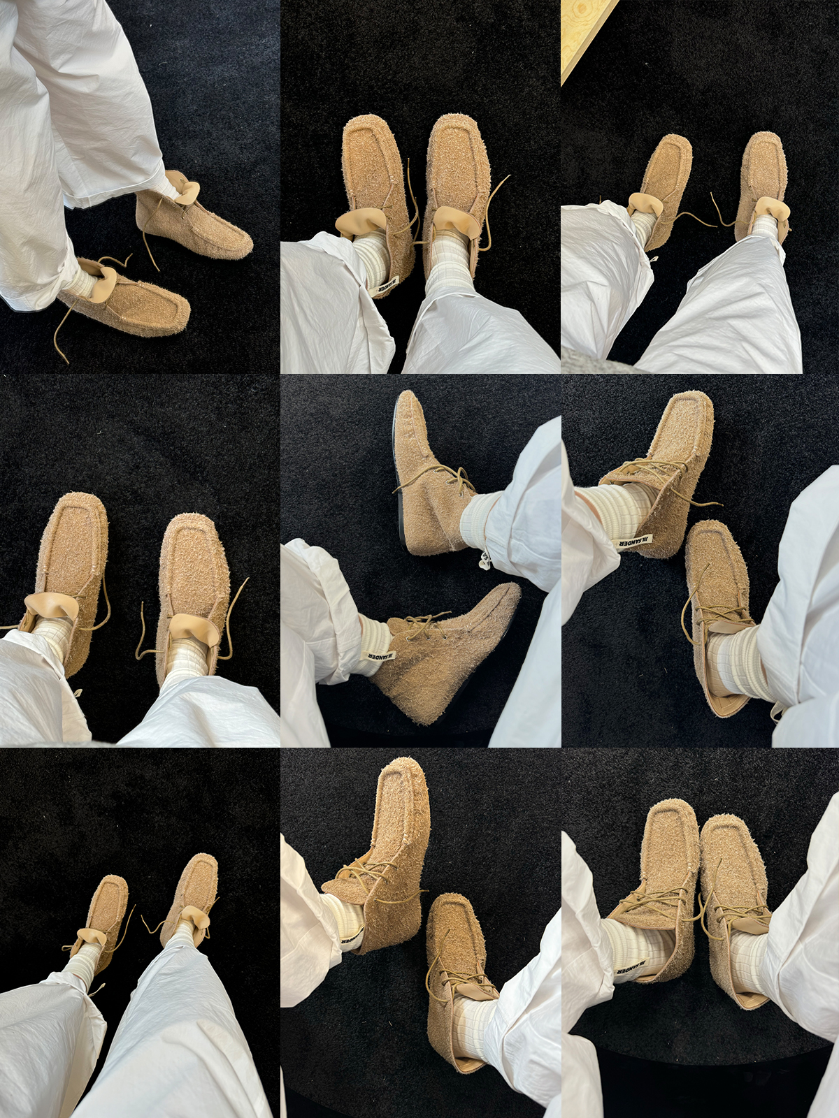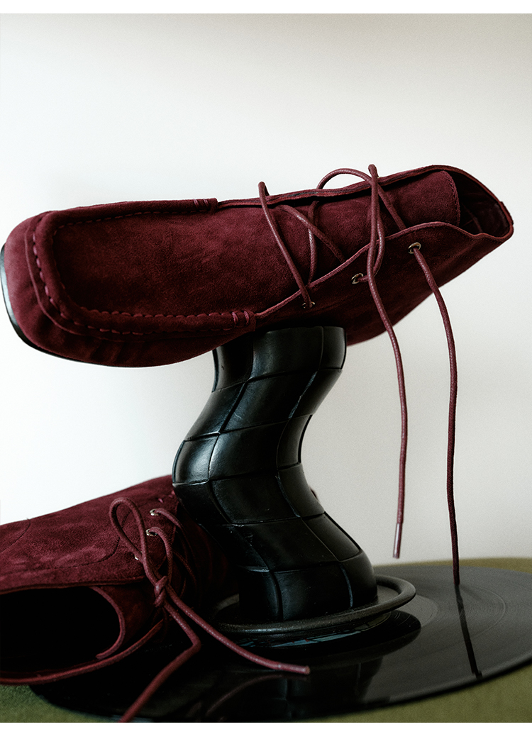HIDEMI 系带复古做旧感进口磨毛牛反绒牛皮中帮方头内增高式踝靴短靴 卡其米/勃艮第酒红