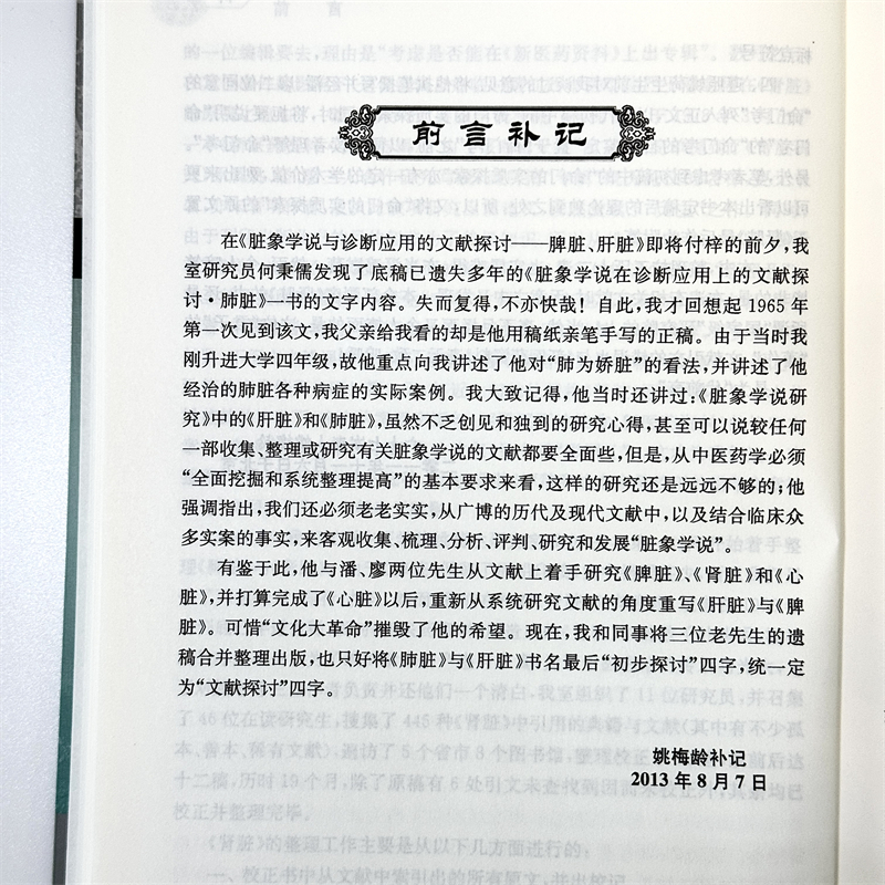《脏象学说与诊断应用的文献探讨——脾脏、肝脏、肺脏》为20世纪60年代姚荷生先生所主持的国家重点科研项目“脏象学说研究”成果的结晶,系由中医古典医籍文献相关论述按照理论专题串编而成。