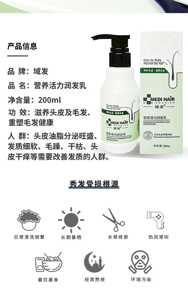 域发 | 营养活力润发乳 200ml | 润发护发素 柔润毛躁 烫后护理 润发养发 改善开叉、干枯、毛躁