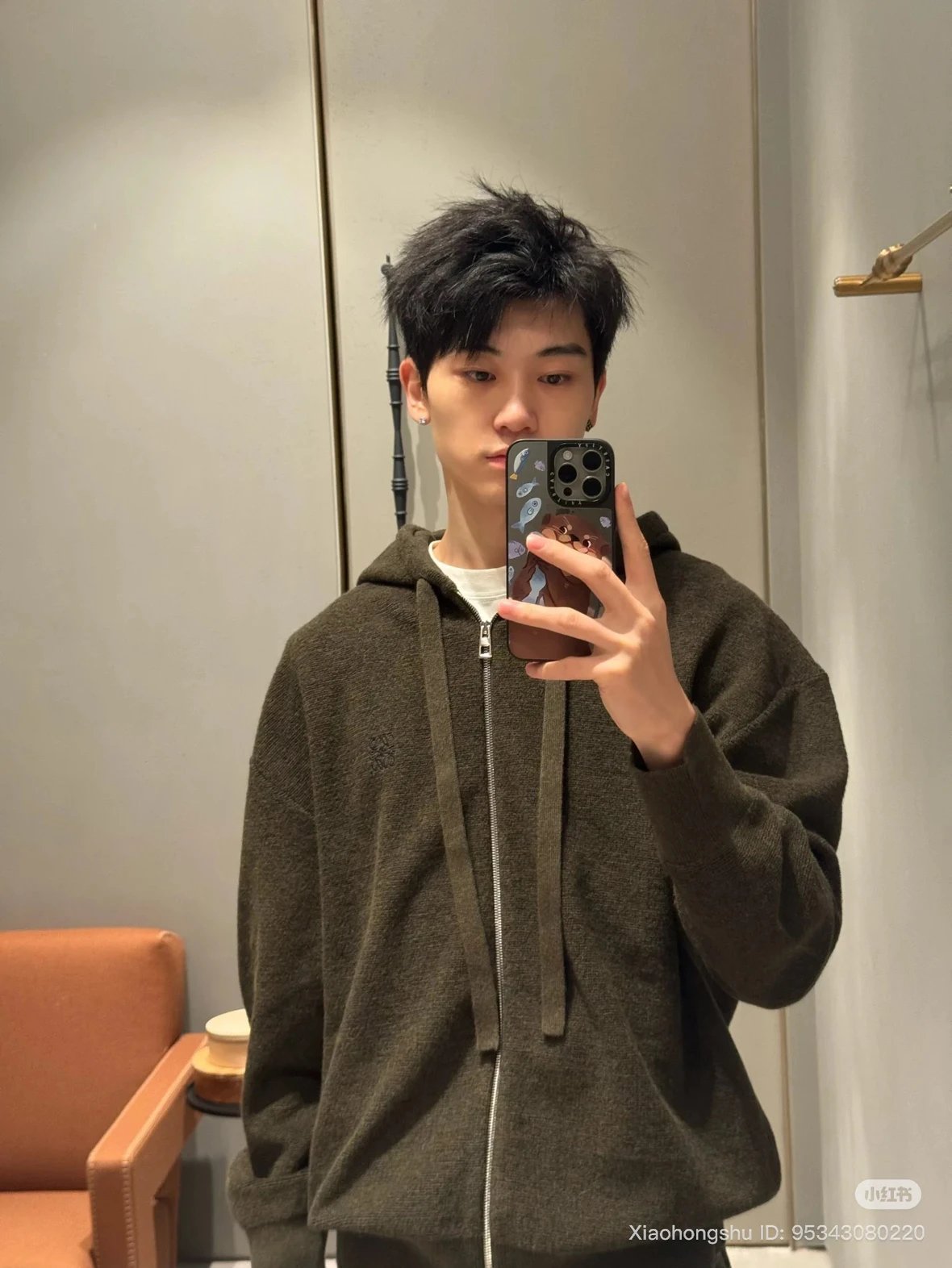 重磅渠道!早春新款 lew刺绣徽标羊毛圈圈连帽拉链帽衫 意大利pagliaccio特种圈圈纱