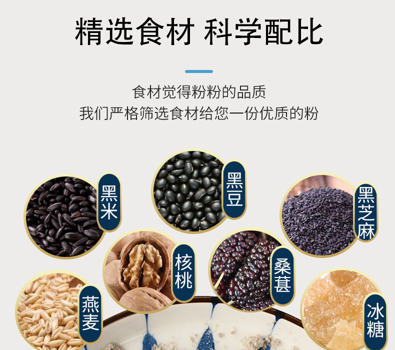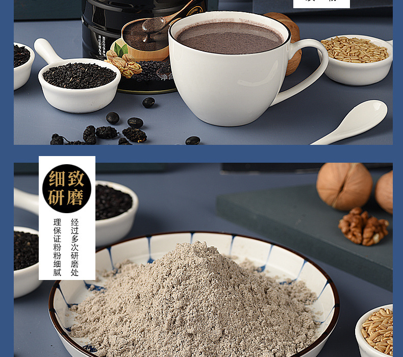 【买2送1】黑芝麻核桃桑葚黑豆粉 现磨熟粉冲饮即食健康营养早餐粉五谷杂粮600g/罐