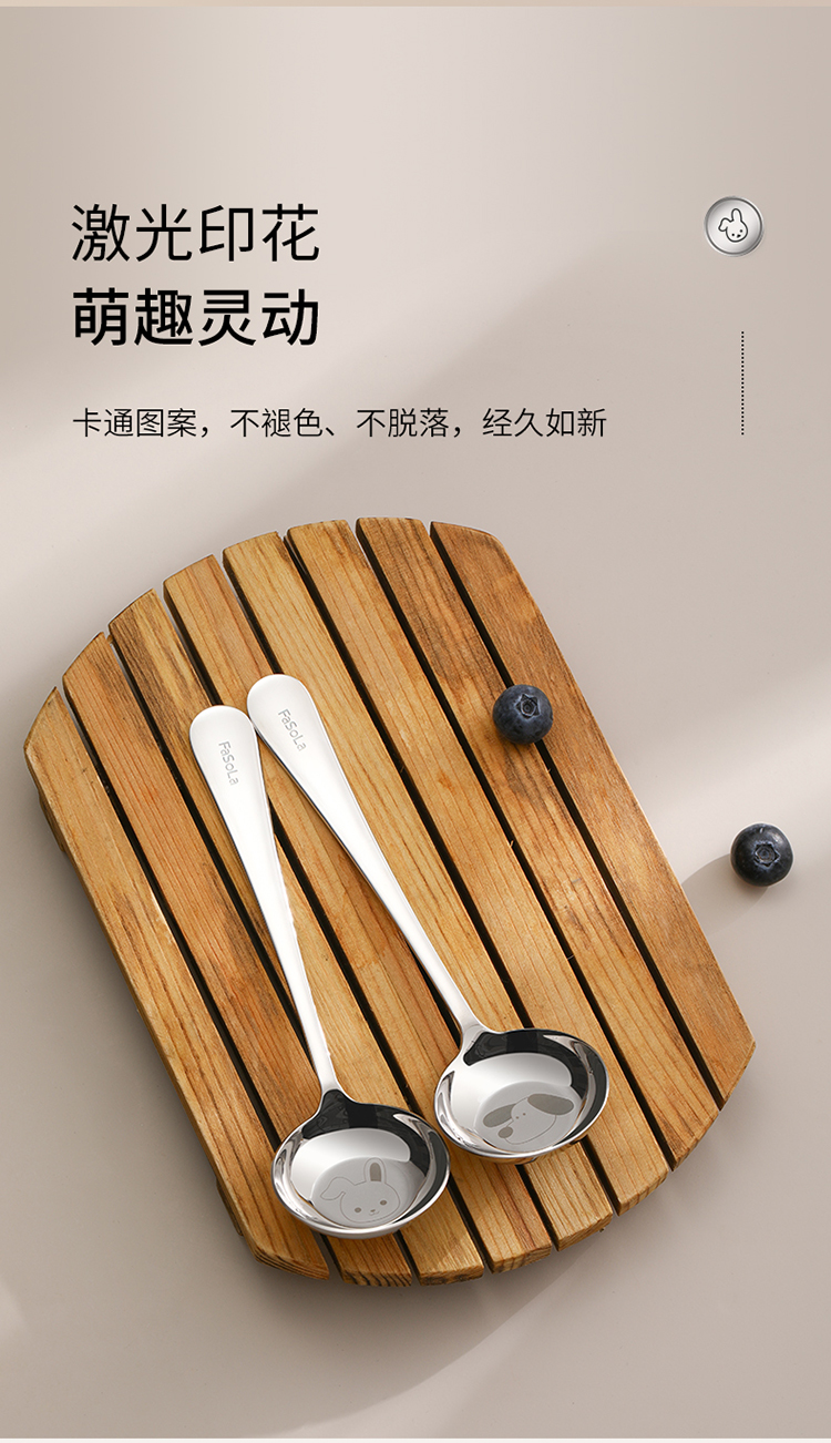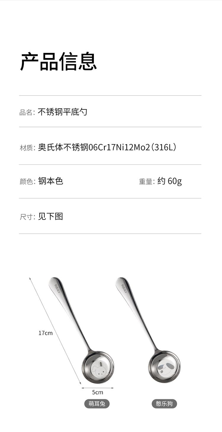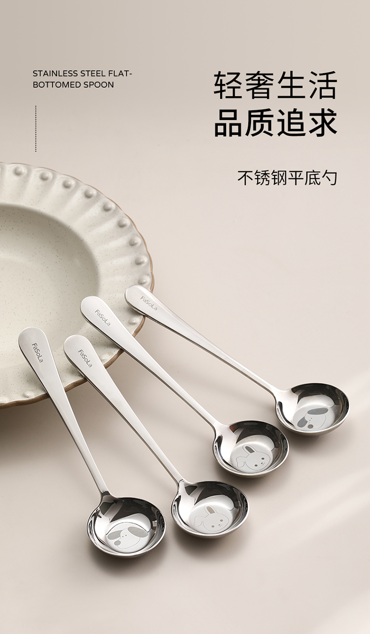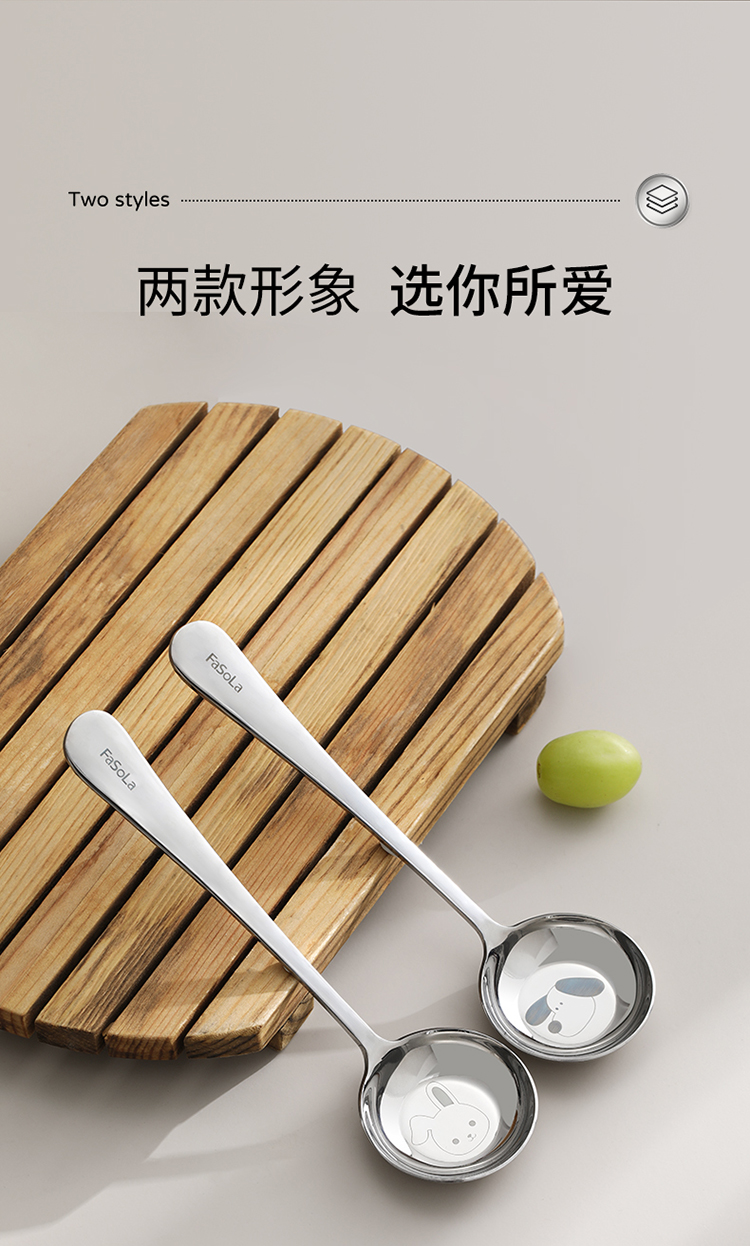 FaSoLa 316L不锈钢勺子家用加深汤匙吃饭餐勺汤勺平底勺卡通勺
