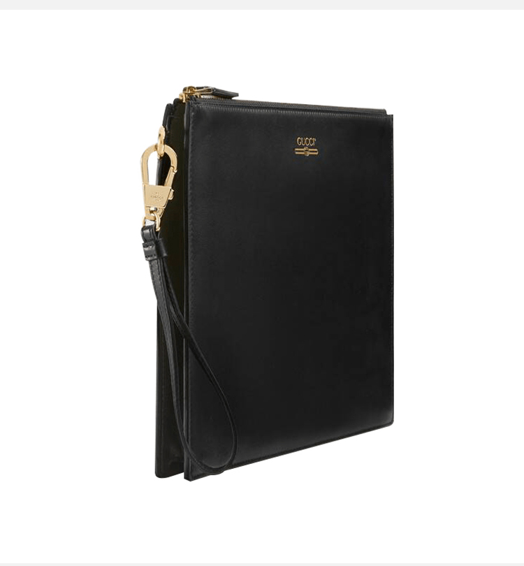 GUCCI 古驰 男士皮革金属字母徽标手拿包 黑色 547613 0YA0G 1000