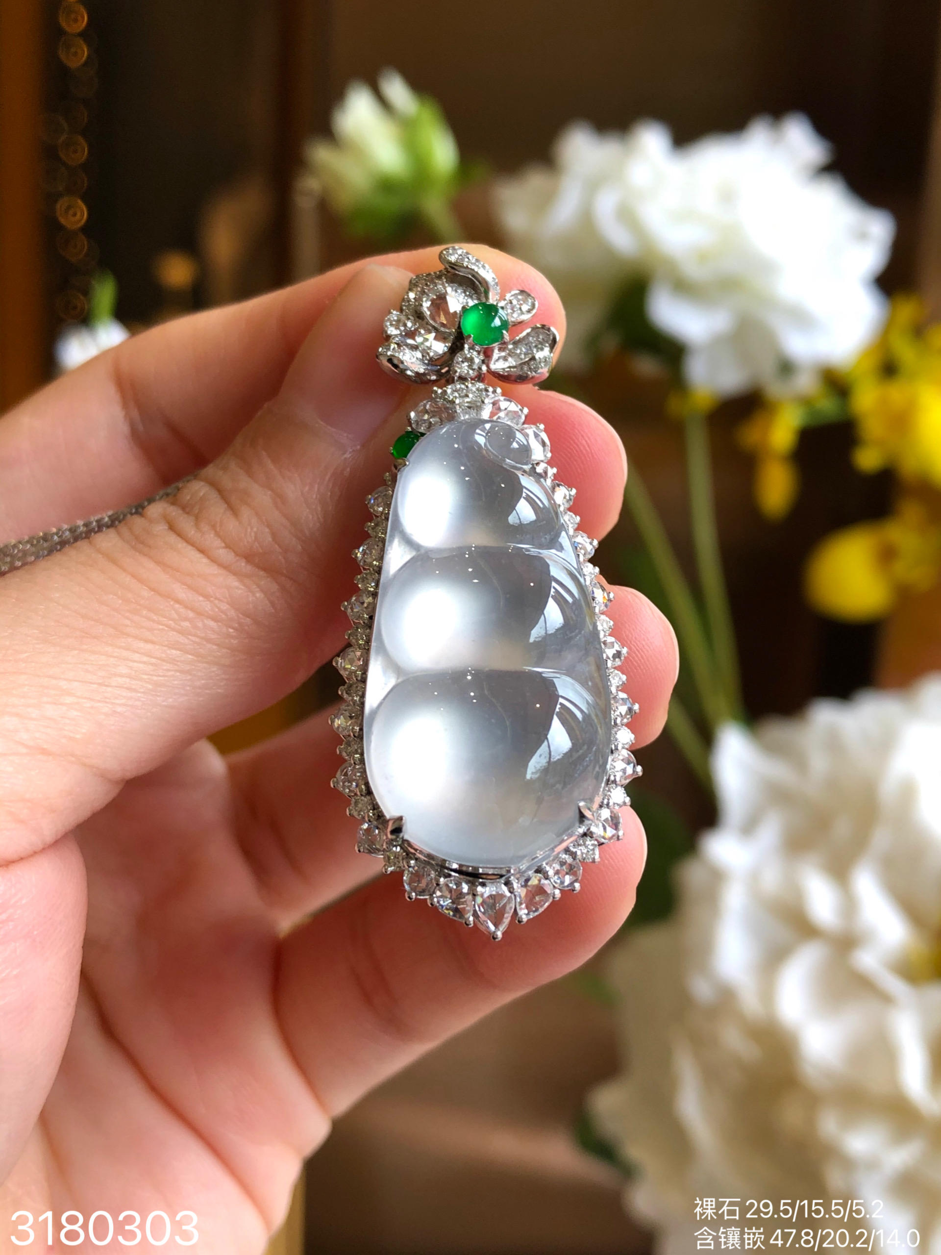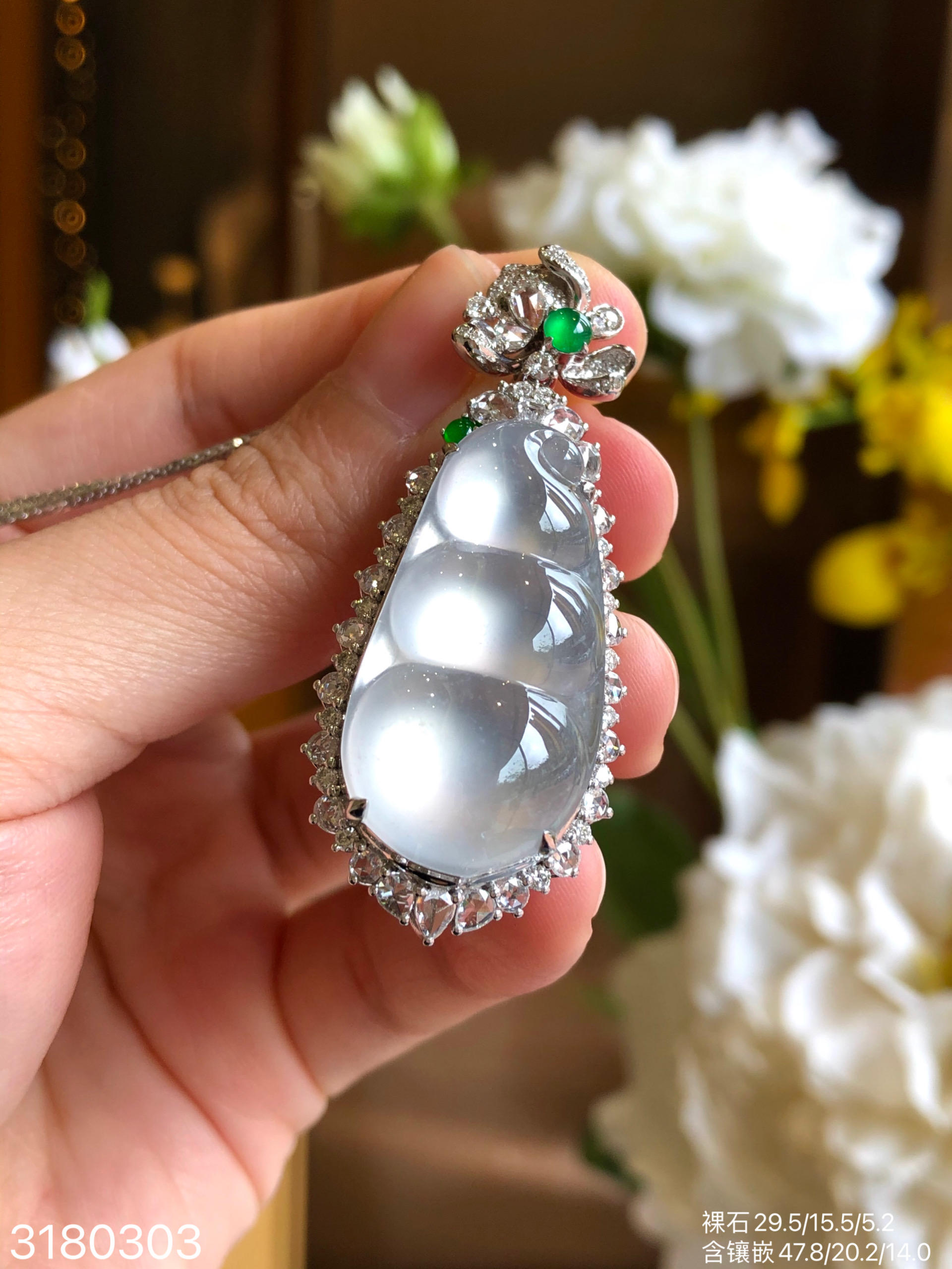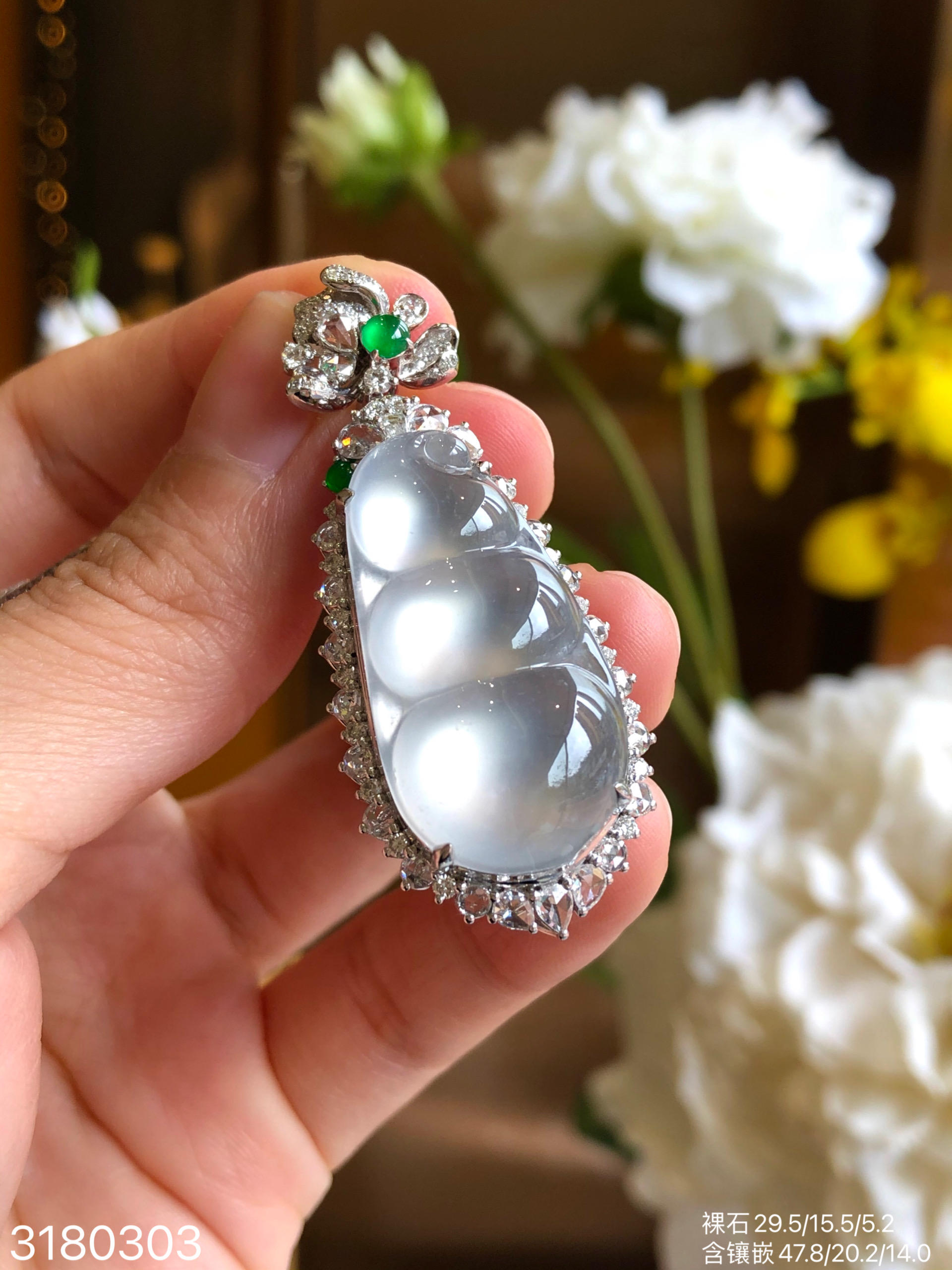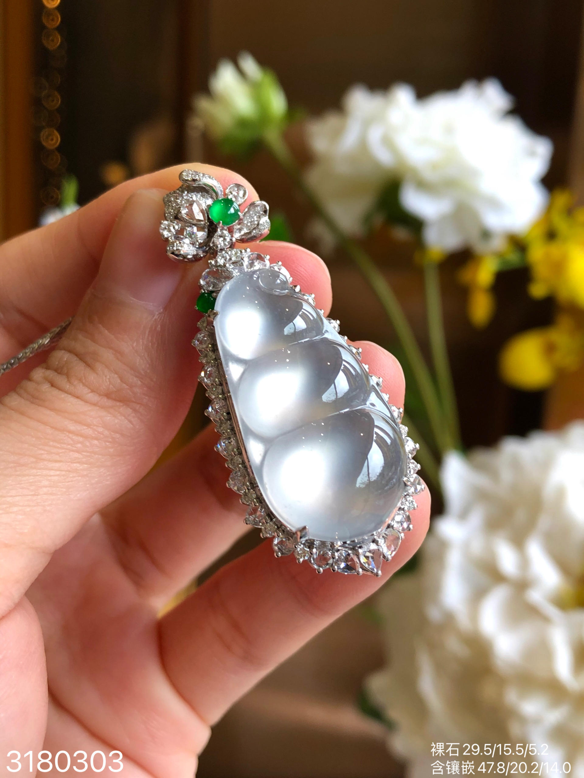 玻璃种飘翠玉兰花吊坠【6250203】具体价格微信咨询