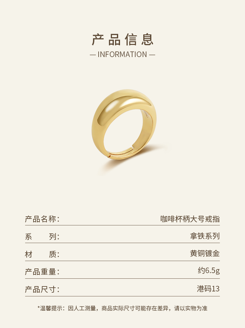 【胡杏儿&王栎鑫同款】Lagomist拿铁系列 | 金/银咖啡杯柄大号戒指