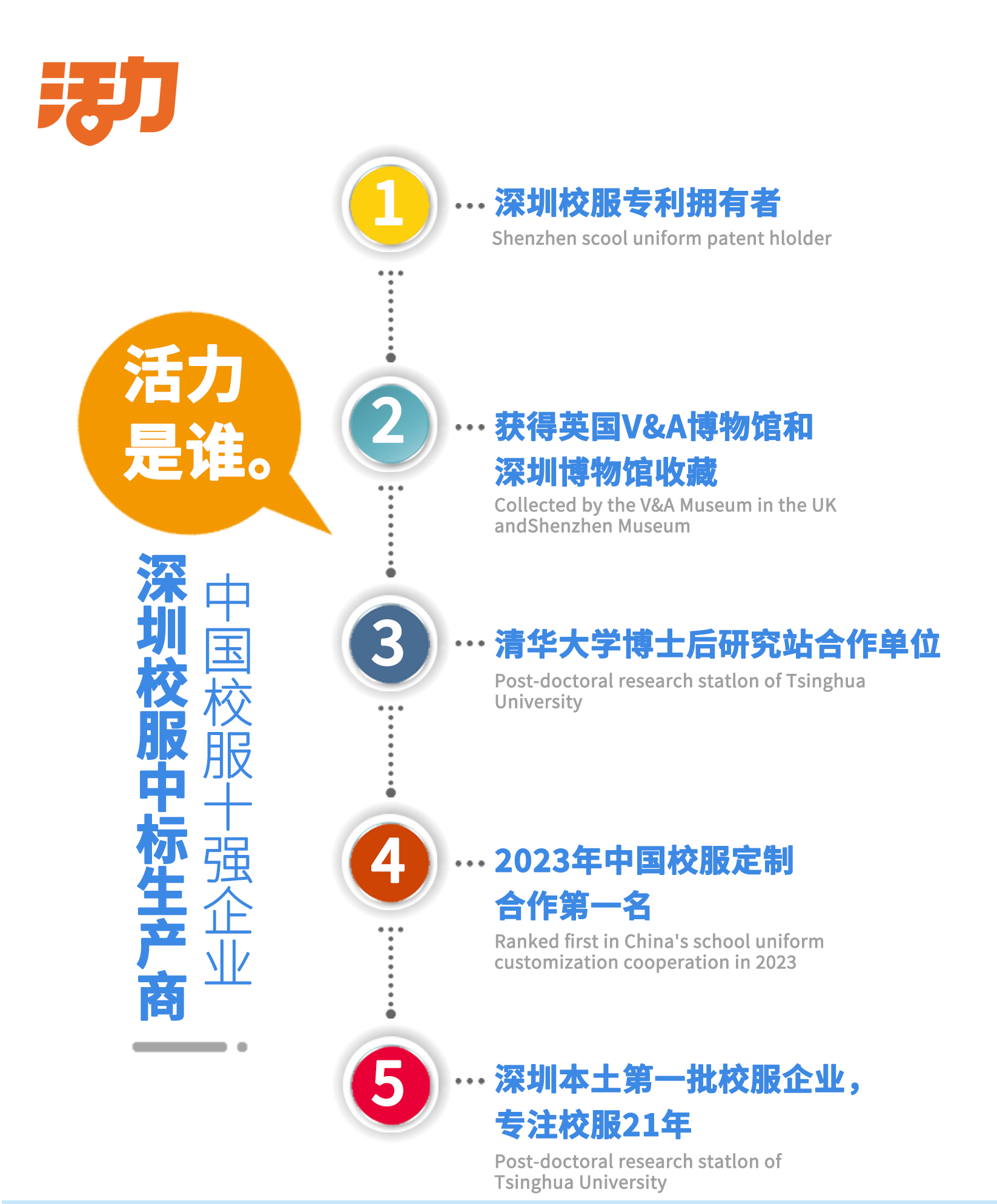 - 活力校服由深圳市中南活力实业股份有限公司创建的品牌,深圳二十一年老品牌,教育局中标企业;主营深圳校服、广州校服、东莞校服、佛山校服、肇庆校服、江苏校服、鞋袜、学生床上用品等学生课桌椅一站式教育领域产品
