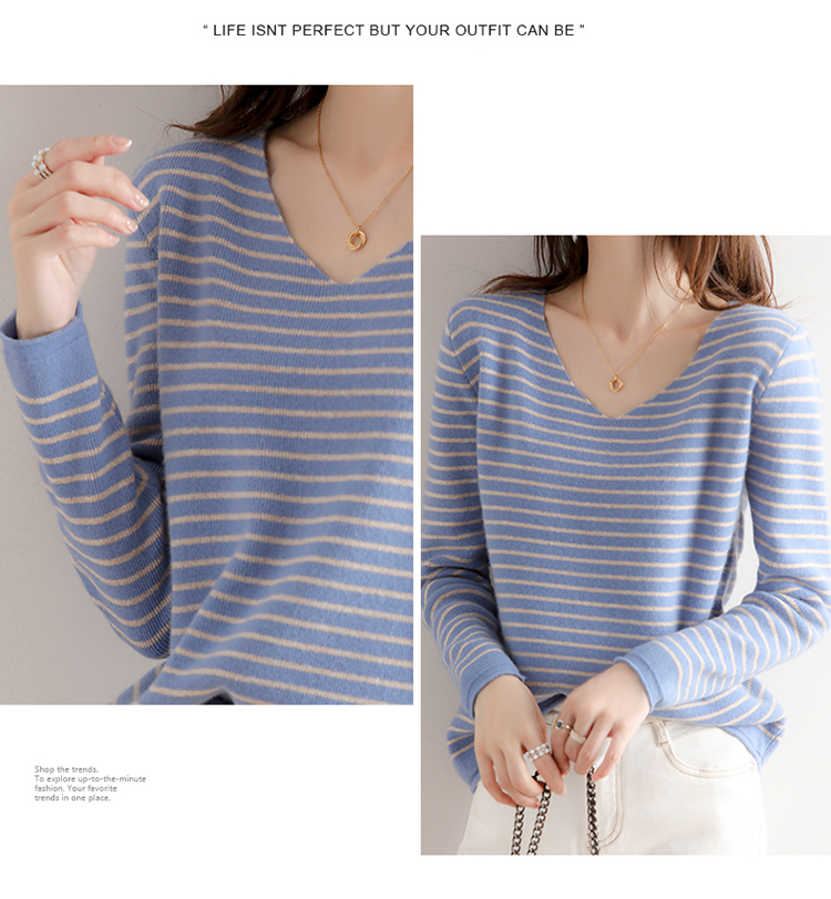 72小时 陆续发出 【初春穿搭 法式条纹衫】千吉娜Chigina 法式条纹针织衫 时尚百搭 柔软舒适 遮肉显瘦