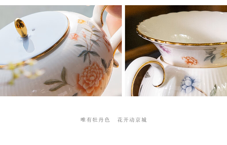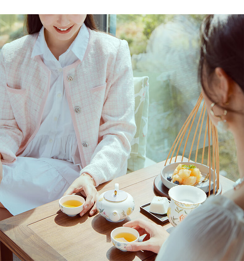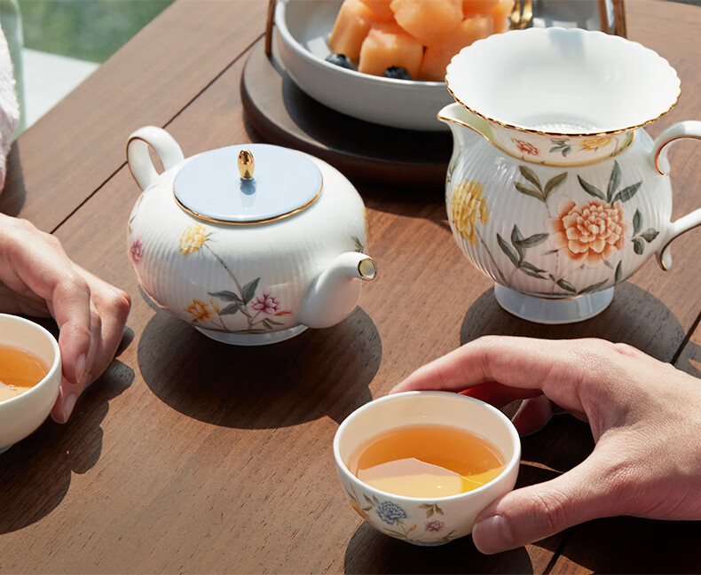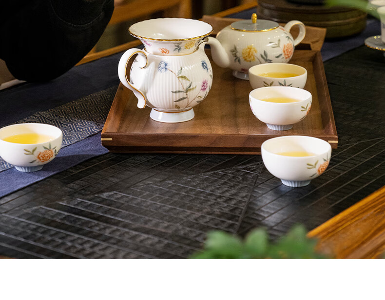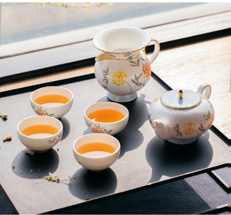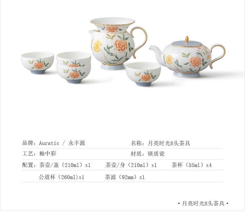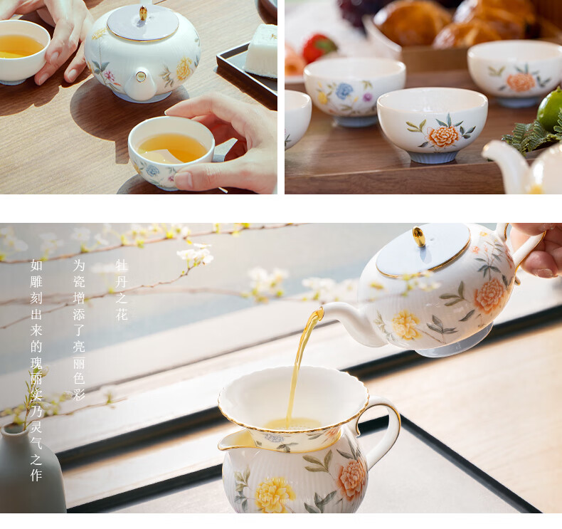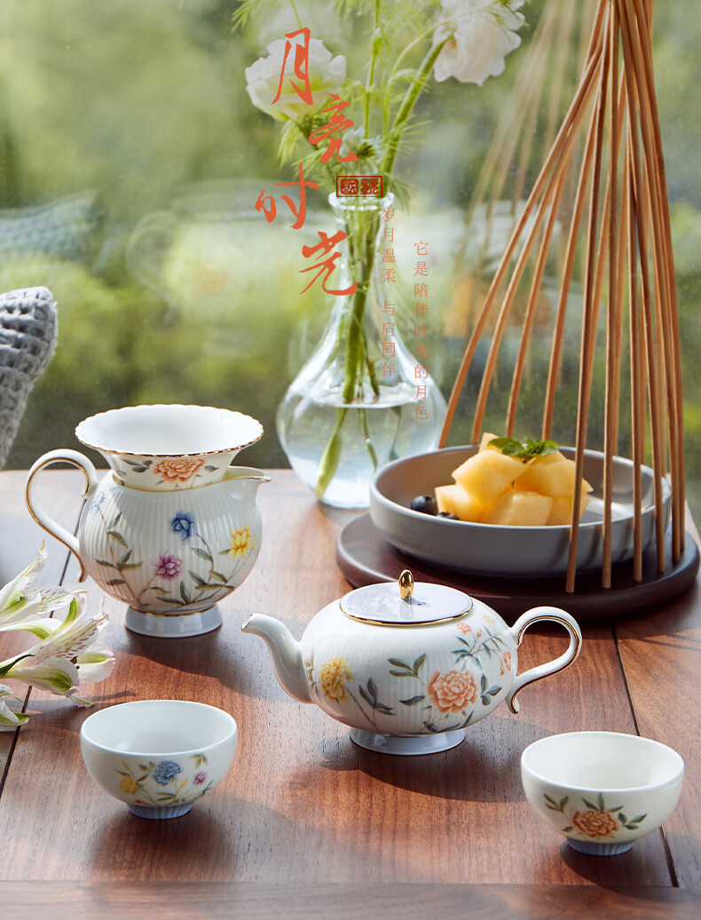 【国瓷·永丰源】月亮时光 浮雕茶具 8头套装 办公室喝茶杯茶具 4人位-圆丰版