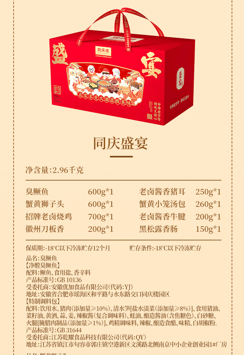 同庆楼 同庆盛宴礼盒2.96kg 臭鳜鱼烧鸡名厨菜组合装 酒店级美味 新春佳节礼盒 礼赠佳品 48小时发货