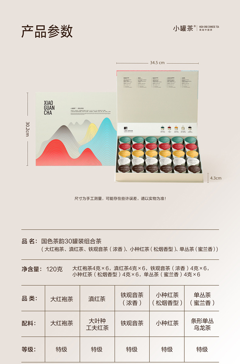 小罐茶国色茶韵特级大红袍浓香型铁观音滇红茶30罐装茶叶礼盒装