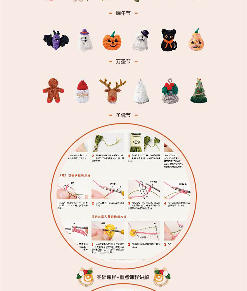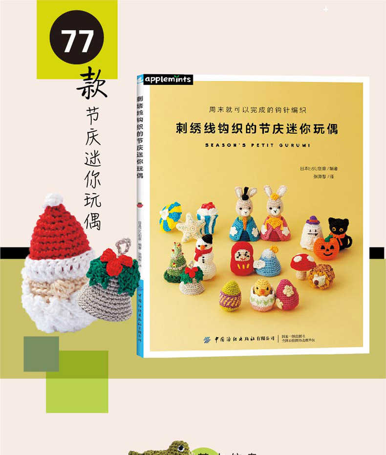 刺绣线钩织的节庆迷你玩偶 刺绣手工制作教程书 零基础学手工 针织线编织入门教程书籍 动物玩偶手工编织自学教程书籍