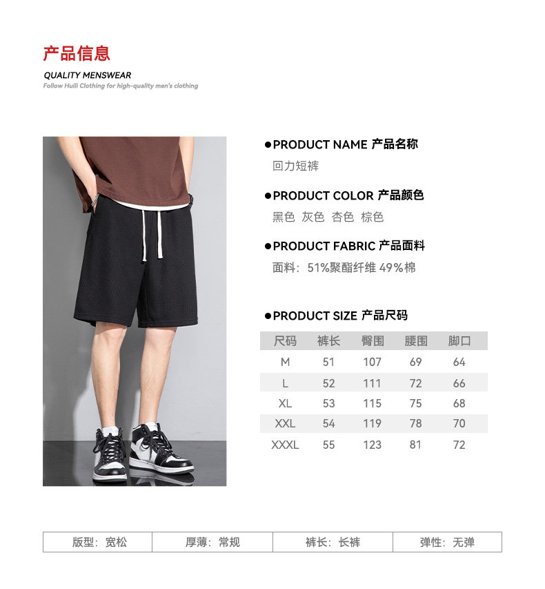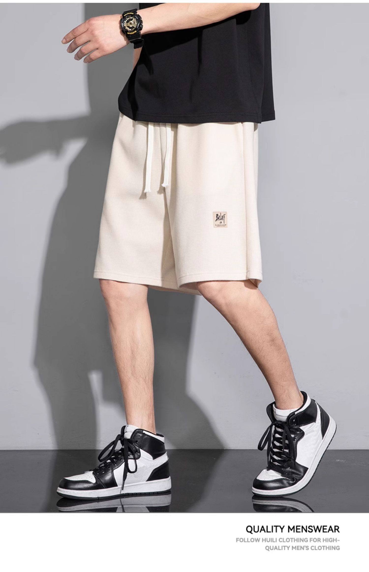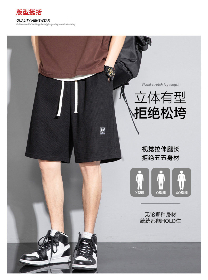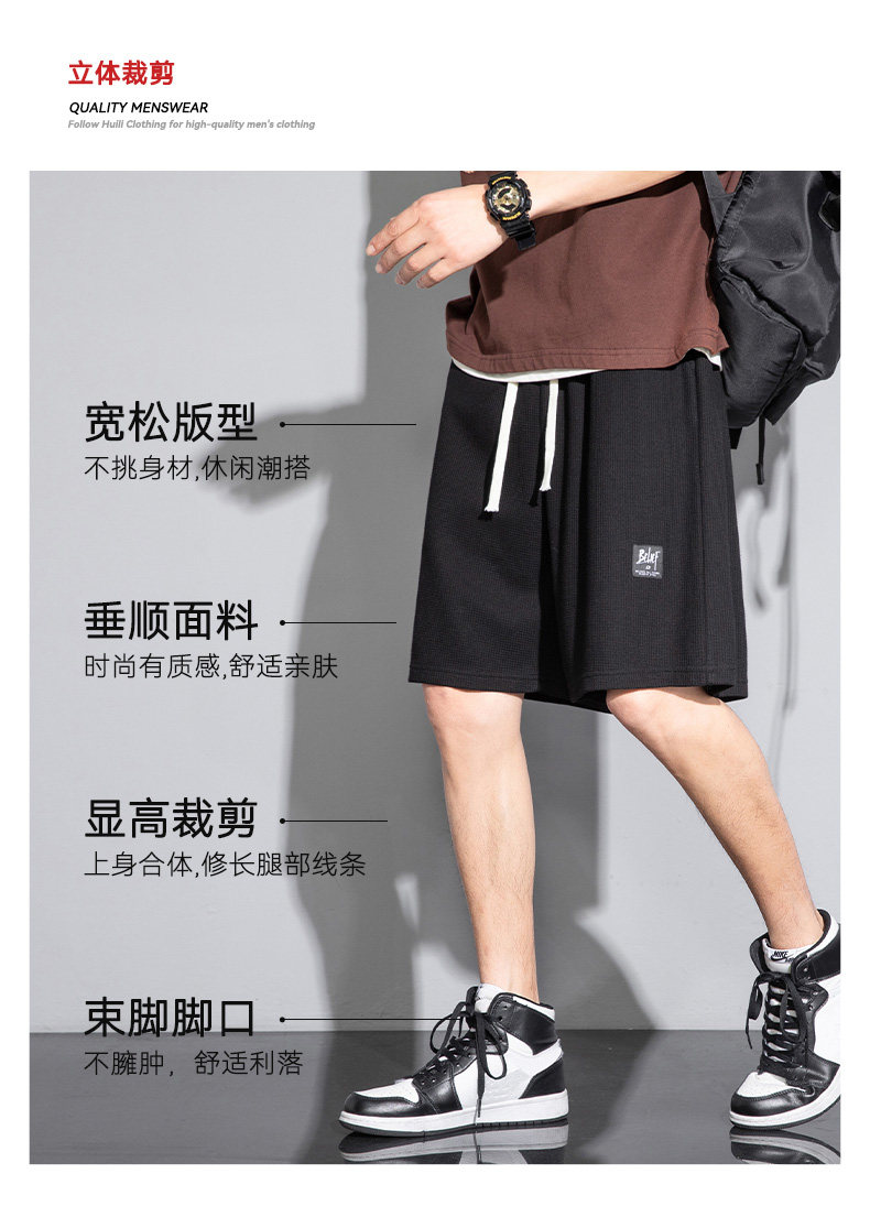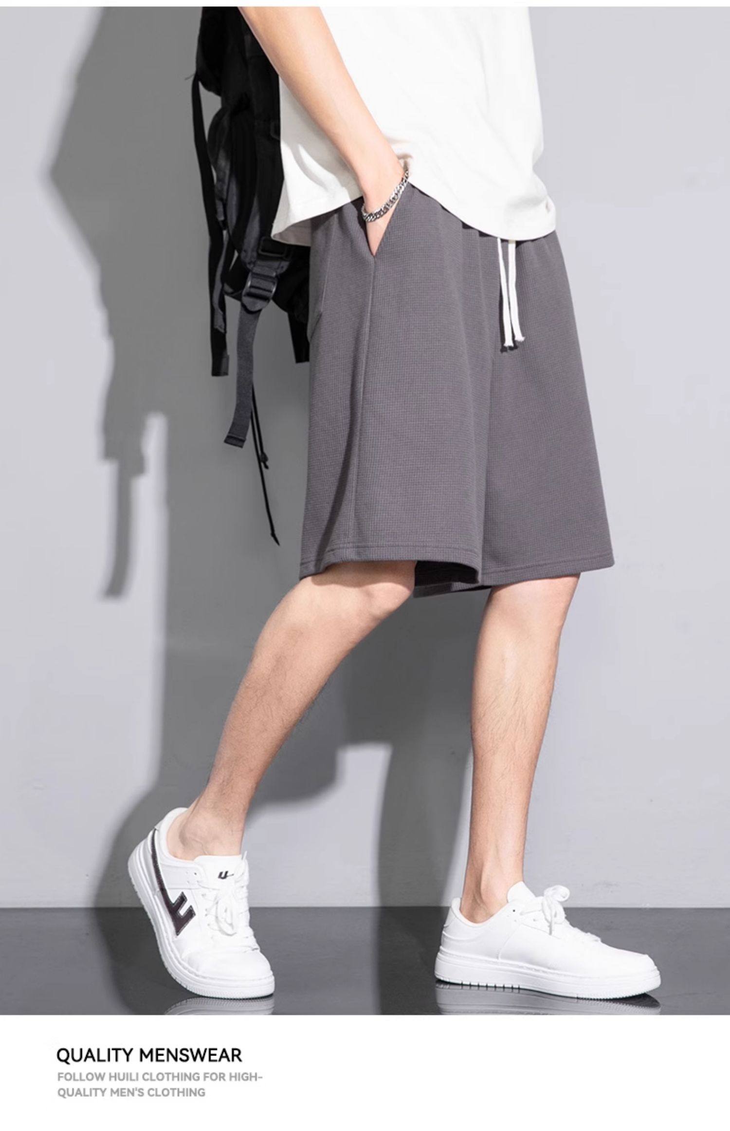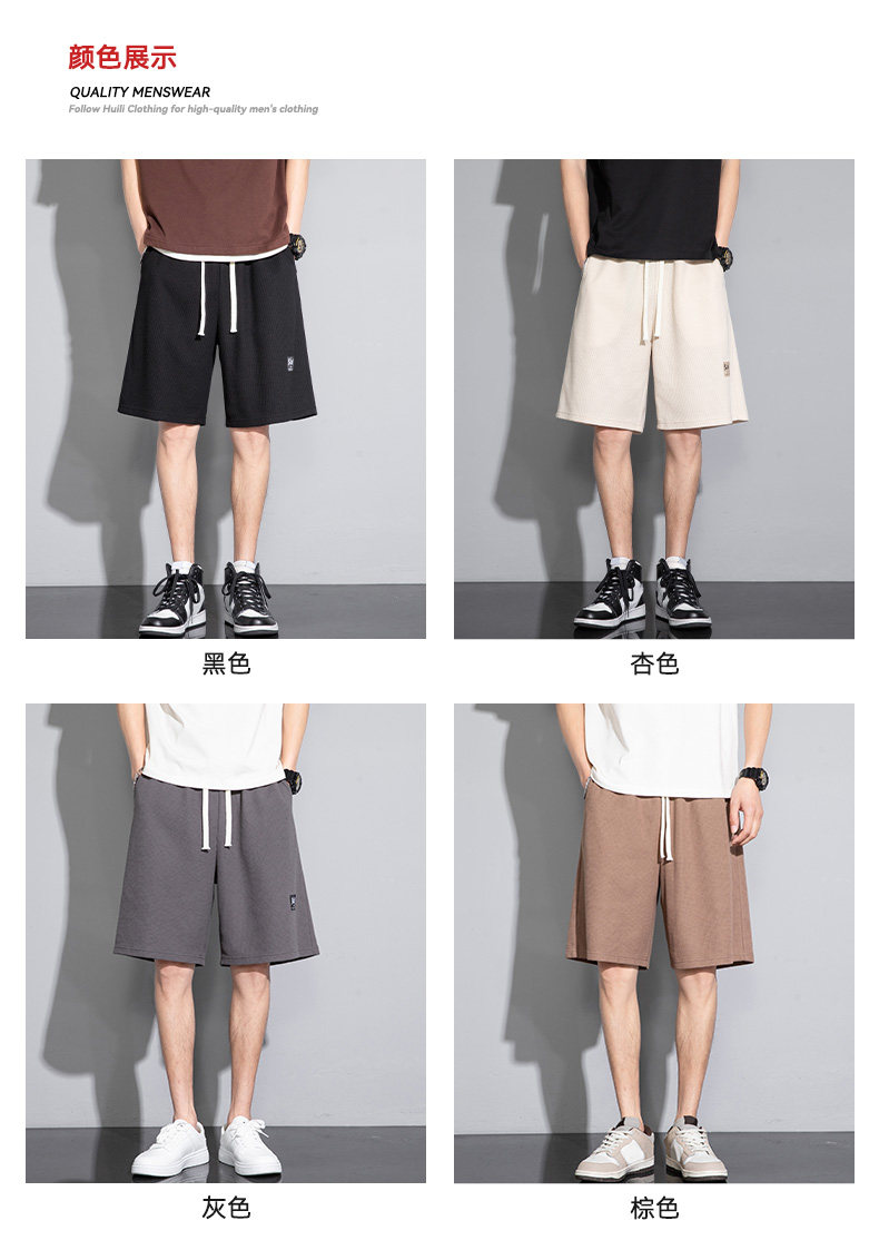 回力夏季短裤男生薄款宽松休闲华夫格中裤运动跑步透气沙滩五分裤