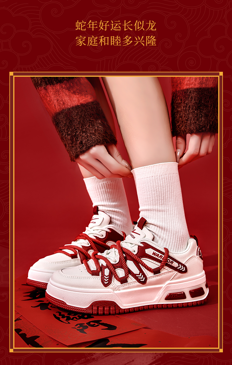 回力女鞋中国红板鞋2024新款冬季本命年穿搭大头休闲运动鞋子女款