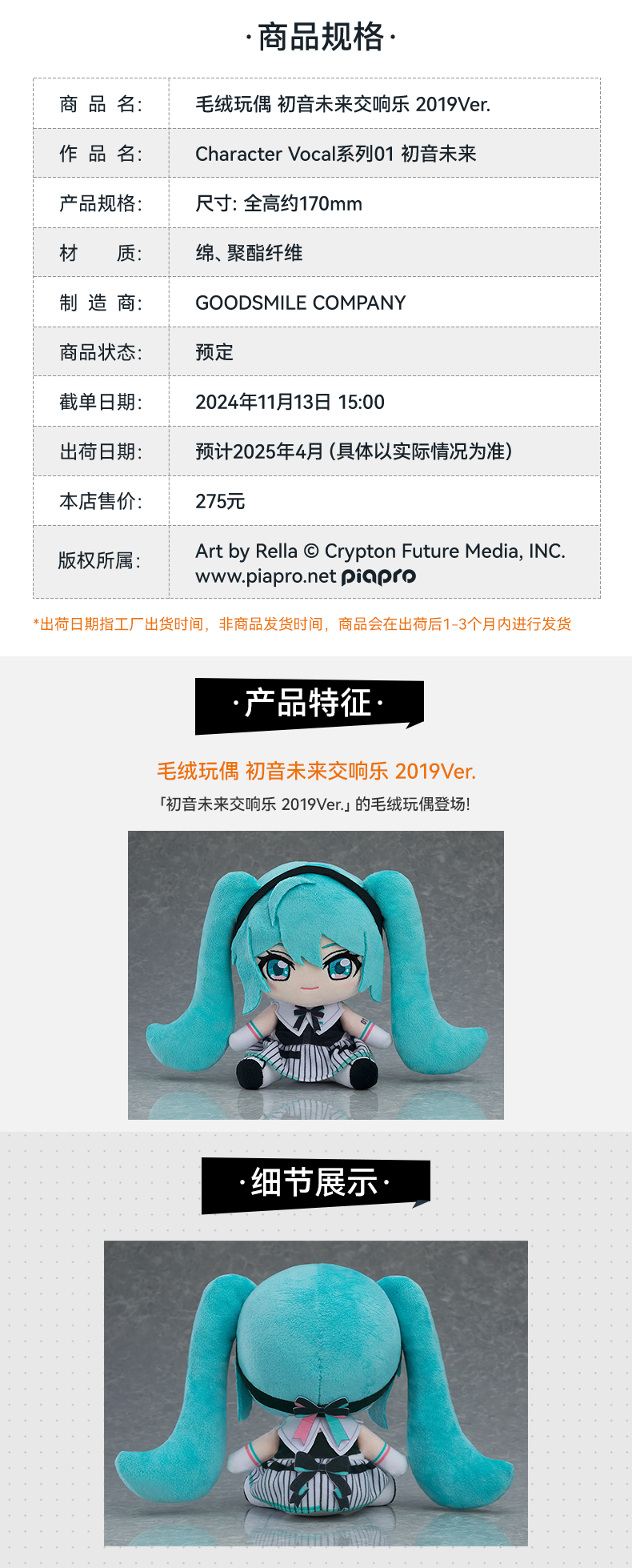 【GSC现货】毛绒玩偶 初音未来交响乐 2019Ver.